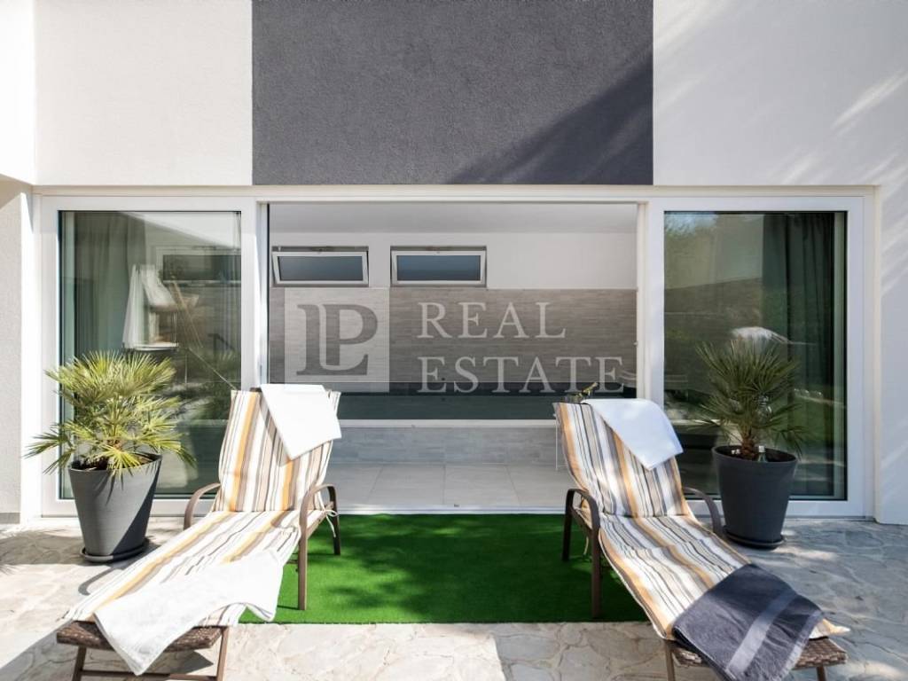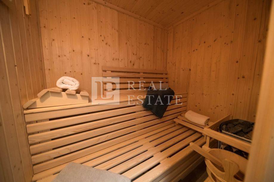 Prizemlje vile opremljeno je za potpunu relaksaciju i uživanje, a sastoji se od saune, kupaonice, unutarnjeg grijanog bazena, teretane, prostrane igraonice i spremišta. Klizne stijene se ljeti otvaraju te se bazen spaja s vanjskim prostorom. Iz igraonice se izlazi na predivno uređenu terasu s roštiljem.