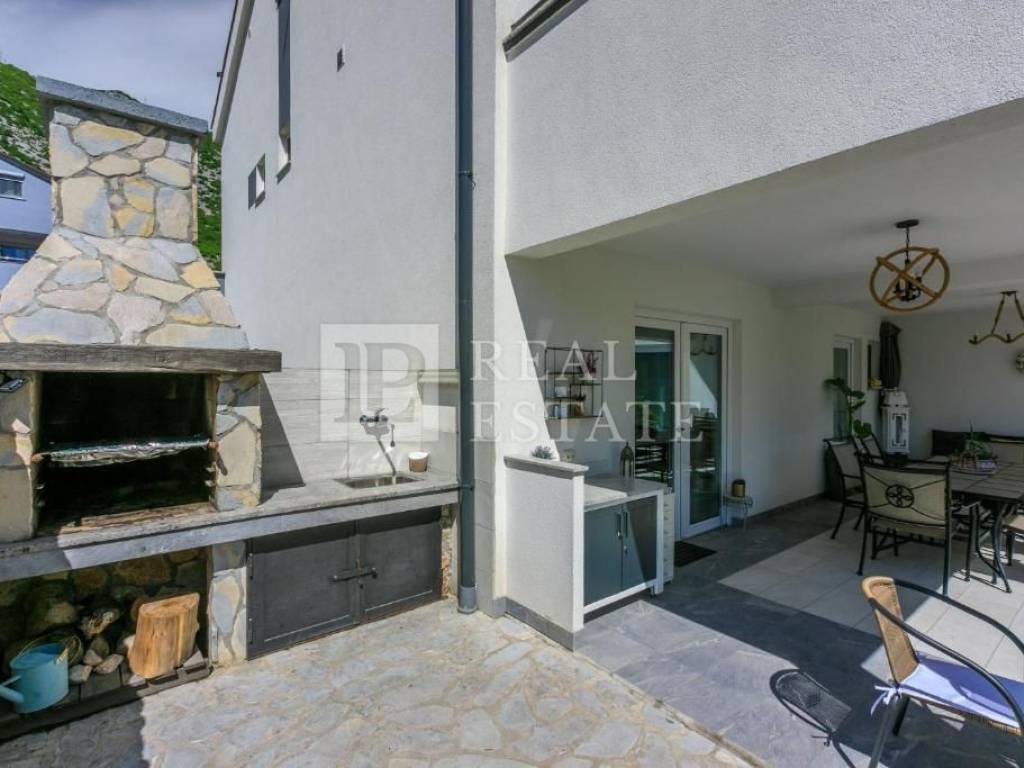 Kuća je kvalitetno građena, fasada je izvedena od 10 cm grafitnog stiropora, što pruža visoku toplinsku izolaciju, na svim prozorima i staklenim stijenama su postavljeni komarnici, betonsko krovište izolirano je s 12 cm vune i pokriveno Tondach Venera crijepom te je postavljena PVC stolaija s Gealan sustavom S9000 koji pruža visoku funkcionalnost i moderan dizajn.