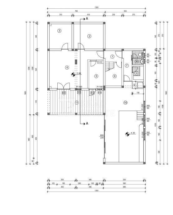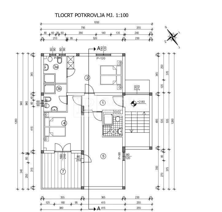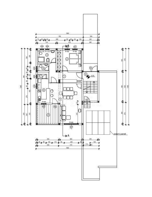 Unutarnjim stepenicama dolazi se do kata gdje se nalaze dnevni boravak, blagovaonica, kuhinja, terasa i spavaća soba s kupaonicom.
