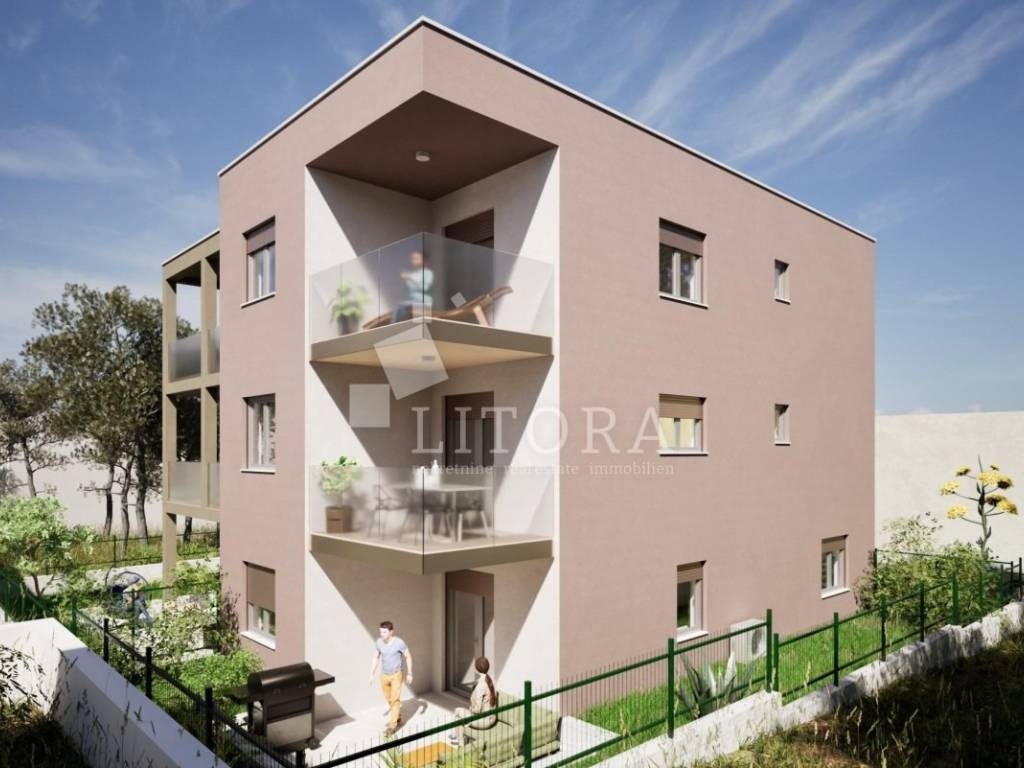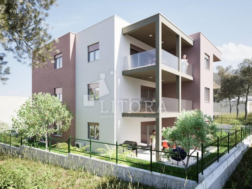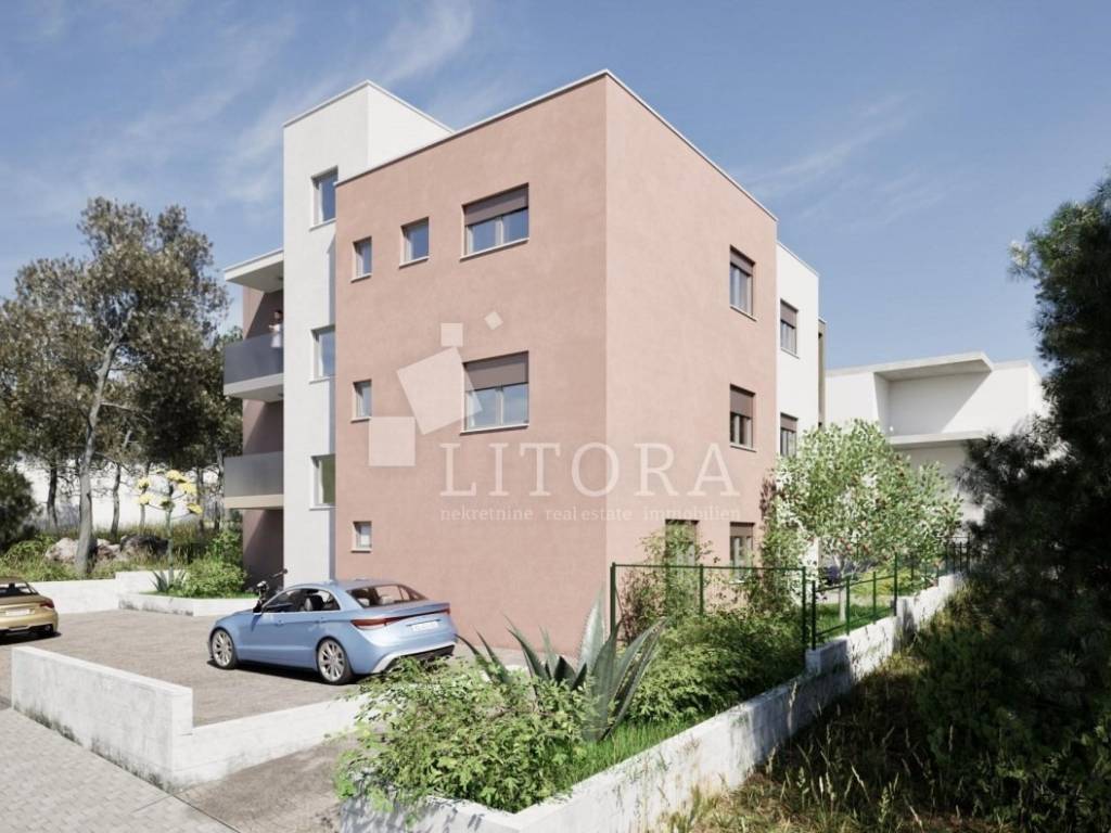 Šibenik – Vidici, u mirnom dijelu naselja smješten je moderan dvosobni stan u prizemlju manje stambene zgrade novije gradnje, ukupne korisne površine 60,53 m². Neto stambena površina stana iznosi 52,68 m², a sastoji se od hodnika, kupaonice, dvije spavaće sobe te kuhinje s blagovaonicom i dnevnim boravkom u otvorenom konceptu. Iz dnevnog boravka izlazi se na prostranu natkrivenu terasu površine 7,40 m² te nenatkrivenu terasu od 6,62 m². Stanu pripada jedno parkirno mjesto površine 12,50 m² te dio zelene površine. Biti će ugrađeni vrhunski materijali keramike, sanitarija, podno grijanje, klima u svim prostorijama, pvc stolarija sa komarnicima, klizne stijene sa el. podizačima roleta. Zgrada je u izgradnji, a završetak radova i useljenje planirani su za ljeto 2026. godine. Lokacija je atraktivna i odlično prometno povezana, u blizini svih važnih sadržaja. Udaljenost od centra grada iznosi 1,9 km, gradska plaža Banj nalazi se na 2,5 km, dok je plaža u Brodarici udaljena 3,6 km.
