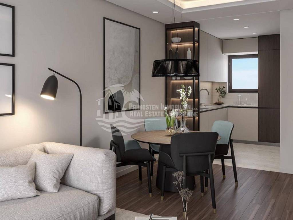 Top ponuda! Posredujemo u prodaji stana sa vrtom S2 koji se nalazi na prizemlju moderne zgrade u izgradnji koja se sastoji od 9 stambenih jedinica. Ova zgrada se nalazi na iznimno dobroj lokaciji blizu svih turističkih sadržaja i udaljena 200 m od prekrasnih plaža i mora. Stan S2 ima površinu 46,06 m2 stambenog prostora, te vrt od 48,15 m2. Stan se sastoji od dnevnog boravka, kuhinje i blagovaonice (19,11 m2), dvije spavaće sobe (10,40 m2 i 8,82 m2 ), kupaonice ( 4,41 m2) i hodnika (3,32 m2). Iz dnevnog dijela se izlazi na prostranu terasu i vrt. Zgrada se radi prema najnovijim standardima gradnje, stanovi će biti klimatizirani, u stanovima će biti postavljeno podno grijanje, električni podizači na prozorima te troslojna stakla. Stanu pripada jedno vanjsko parkirno mjesto. Fantastična lokacija cca 200 m od mora i blizu svih turističkih sadržaja čini ovu nekretninu odličnom prilikom. Ovaj stan u novogradnji je jedinstvena investicijska prilika idealna za cjelogodišnji boravak ili turistički najam.