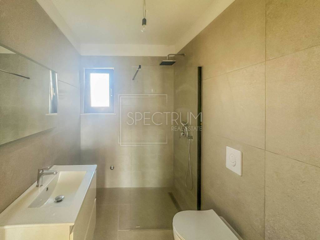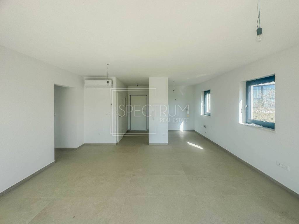 Stan se nalazi na 1.katu stambene zgrade sa 4 stambene jedinice. Površina stana iznosi 87 m2. Stan se sastoji od prostranog dnevnog boravka sa kuhinjom i blagovaonicom, 3 spavaće sobe, kupaonice, wc-a, hodnika, spremišta i balkona. Stanu pripada krovna terasa površine 84.7 m2. Na krovnoj terasi se već nalaze spremni priključci i odvodi za ugradnje ljetne kuhinje i hidromasažnog bazena. Sa krovne terase se pruža otvoreni pogled na prirodu. Stan se grije putem klima uređaja i podnog grijanja na struju. Zgrada ima i dimnjak, pa postoji mogućnost i ugradnje peći na drva. Stan se prodaje u fazi ključ u ruke (završeni podovi i sanitarije, bez namještaja). U gradnji su korišteni vrlo kvalitetni materijali. Ispred ulaza u zgradu nalazi se parking.