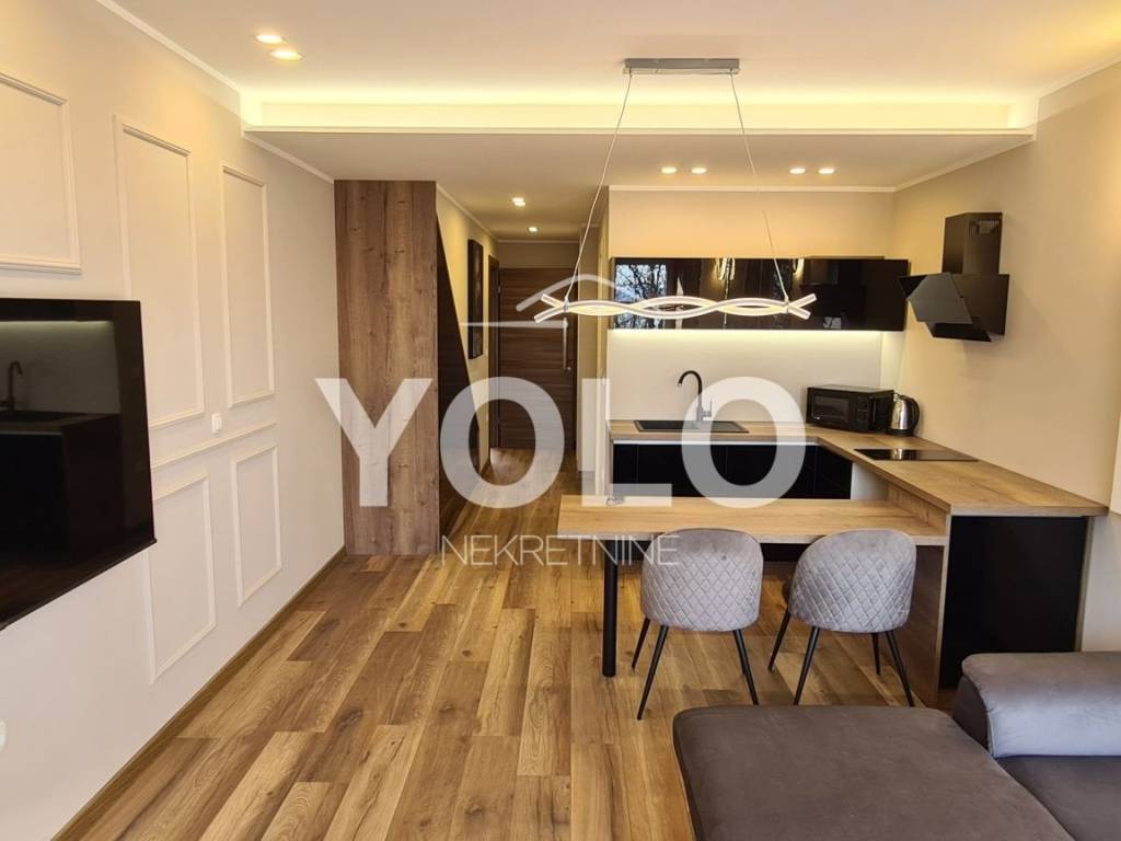 Posredujemo u najmu lijepog novouređenog stana na Krnjevu, površine 46m2. Stan se je vrlo moderno namješten i sastoji od dnevnog boravka, kuhinje i blagovaonice "open space" koncepta, hodnika, jedne spavaće sobe te kupaonice. Blizina svih potrebnih sadržaja. Stan se iznajmljuje dugoročno.