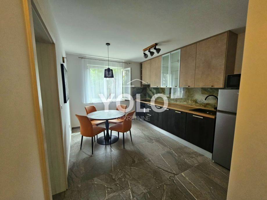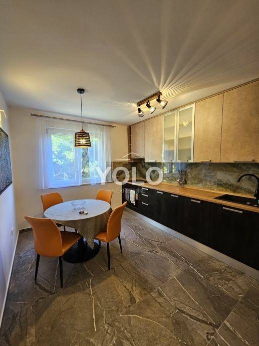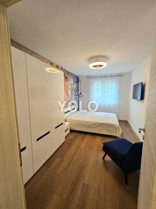 Izdvajamo iz ponude novouređen, moderan stan na odličnoj lokaciji u blizini svih potrebnih sadržaja, na desetak minuta pješice od Pravnog fakulteta i nekoliko minuta pješice od Osnovne škole Eugen Kumičić. Stan je kompletno renoviran i u njemu od renovacije nije nitko stanovao. Potpuno je namješten i sav namještaj je nekorišten. Sastoji se od potpuno opremljene kuhinje s blagovaonicom, dnevnog boravka i spavaće sobe te kupaonice sa tuš kadom. U dnevnom boravku i u spavaćoj sobi su televizori. Kuhinja je opremljena sa novom mašinom za suđe, mikrovalnom i aparatom za kavu. U produžetku kuhinje nalazi se i kliznim vratima odvojena ostava u kojoj je smješten mini vešeraj sa novom perilicom za robu. U stanu su dozvoljeni kućni ljubimci.