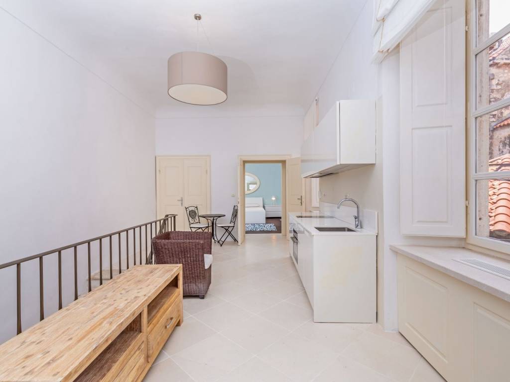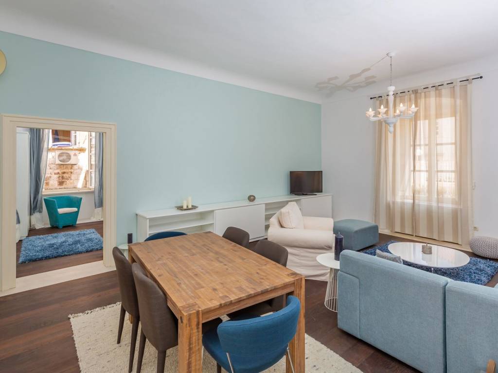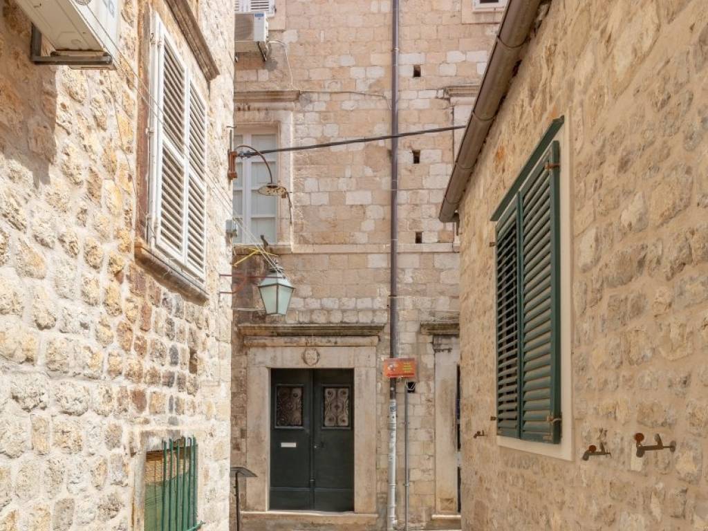 Stan u Dubrovniku nalazi se nedaleko od Straduna u samom centru grada. 2015. godine stan je potpuno renoviran, restauriran i opremljen namještajem. Stavljene su betonske ploče, hrastov parket, klima uređaji, kupaonice su luksuzno opremljene. Piano nobile sa visokim stropovima od 3,7 m. Sve prostorije su klimatizirane. Stan se sastoji od 4 velike prostorije. Na prvom katu su: predprostor (saloca) s kuhinjom, 2 spavace sobe, 2 kupaone i dnevni boravak s televizijom. U prizemlju se nalazi stepeniste, mala kuhinja s perilicom za rublje, WC i konoba.