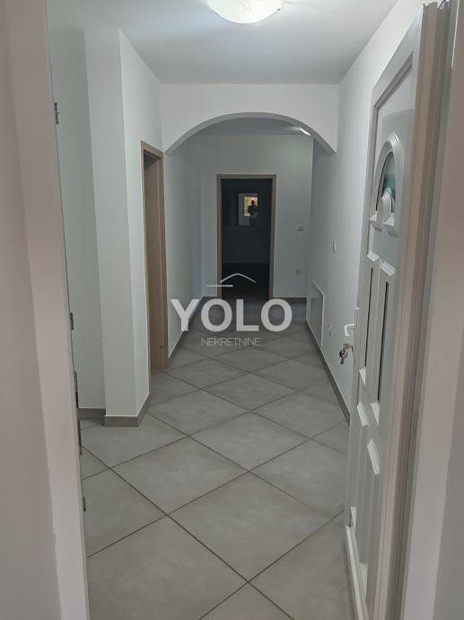 Posredujemo u najmu stana, 2S+DB, površine 120m2. Stan se nalazi na prvoj etaži privatne kuće. Stan je dvosoban sa dnevnim boravkom, kuhinjom i blagovaonicom, kupaonom i zasebnim wc-om. Stan se iznajmljuje prazan u kojem se nalazi postojeća kuhinja. Svaka soba ima svoj balkon + velika terasa sa pogledom na more. Grijanje u stanu je podno, a hlađenje putem klima uređaja. Stanu pripadaju dva parkirna mjesta unutar ograđene okućnice.
