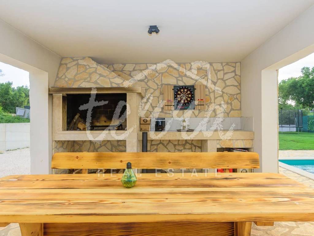 Kuća je kompletno namještena i opremljena, postavljeni su klima uređaji, te se kao takva i prodaje.