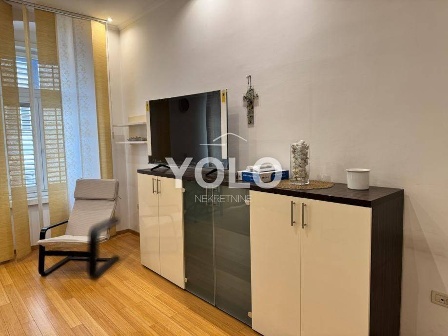 Posredujemo u najmu lijepo uređenog stana, površine 77m2, nedaleko od centra grada. Stan se sastoji od hodnika, jedne spavaće sobe, dnevnog boravka, spremišta, kuhinje i kupaonice. Lokacija zgrade je odlična jer je smještena u mirnijem dijelu središta grada, a do samog Korza dolazi se za 5 minuta hoda.