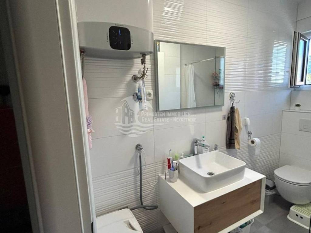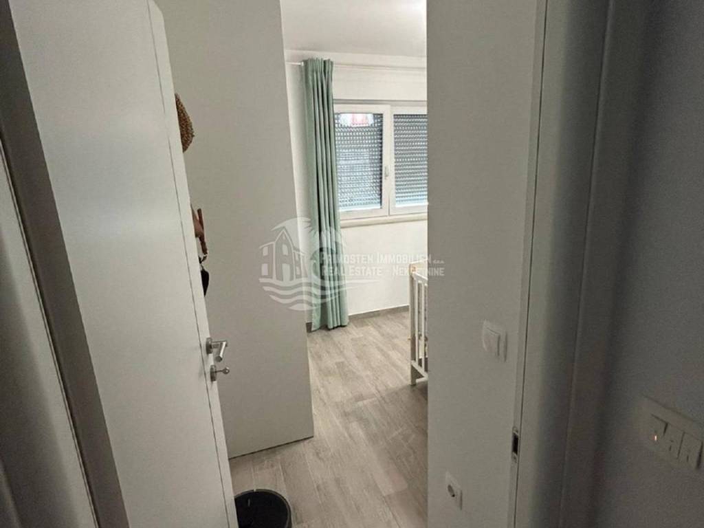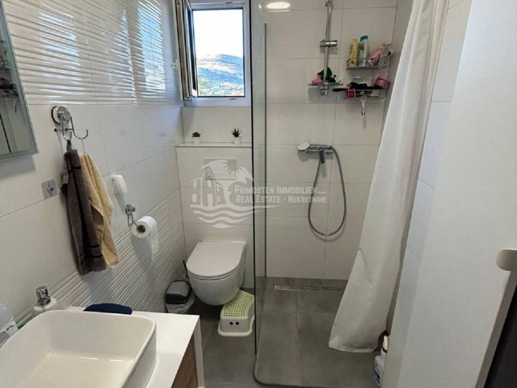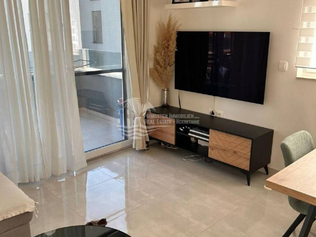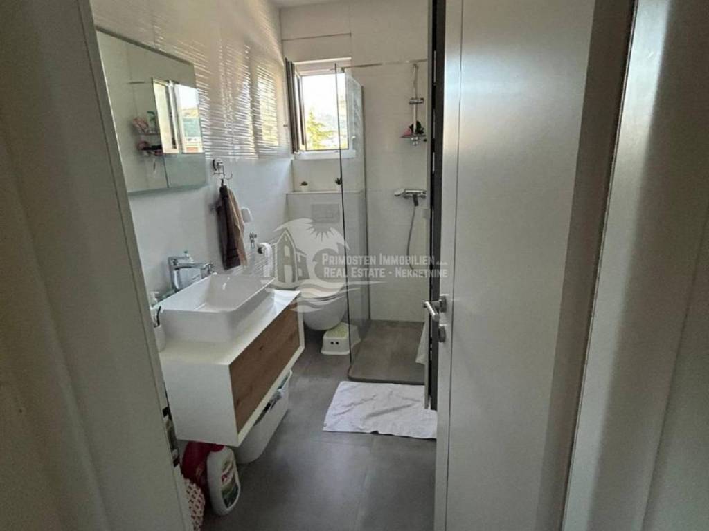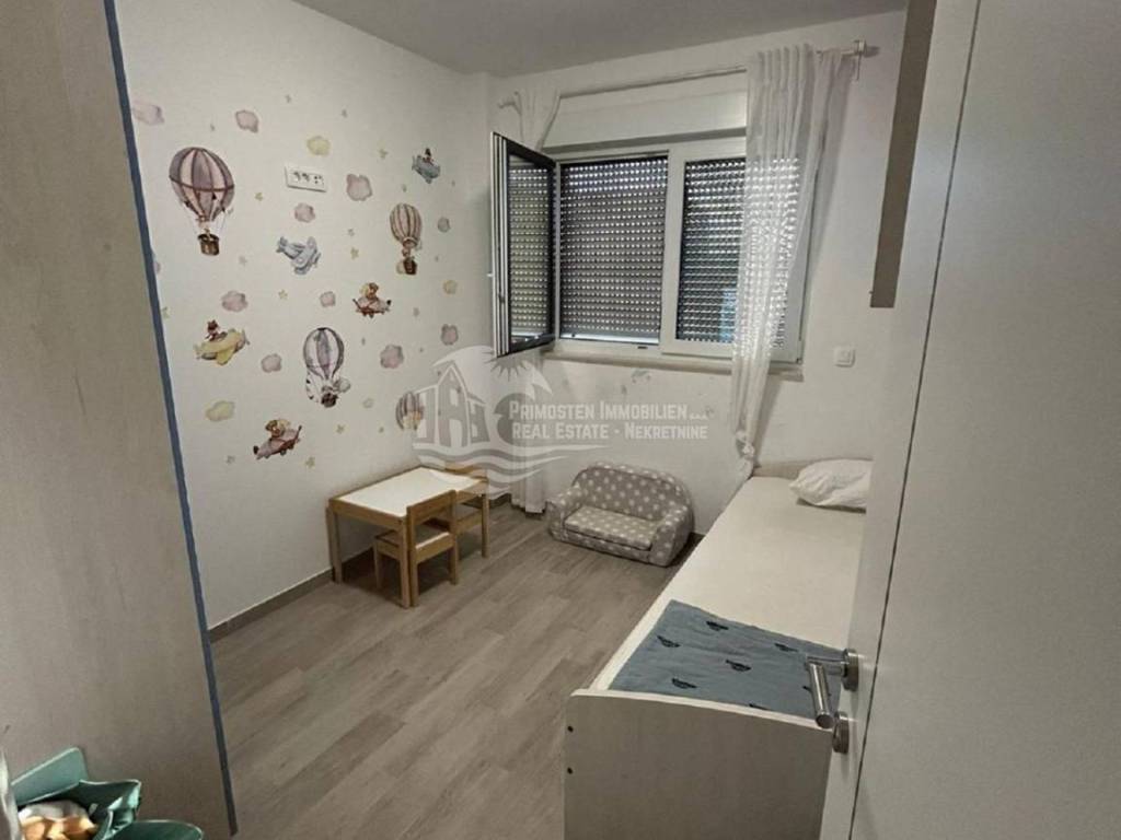 Kompletno namješten stan na drugom katu u Segetu udaljeno 300m zračne linije od mora, te u blizini svih sadržaja. Stan se nalazi u stambenoj zgradi novije gradnje koja ima lift i zajednički bazen. Stambena površina stana sa balkonom iznosi 60 m2. Stan se sastoji od hodnika, dvije spavaće sobe, kupaonice, te prostranog dnevnog boravka sa kuhinjom. Iz dnevnog dijela se izlazi na balkon sa kojeg se pruža pogled na more. Stanu pripada jedno vanjsko parkirno mjesto. Stan se prodaje kompletno namješten i u stanu je postavljeno podno grijanje i klima uređaj. Kompletna dokumentacija je uredna, te postoji mogućnost kupnje kreditom. Udaljenost od zračne luke Split je 6 km.