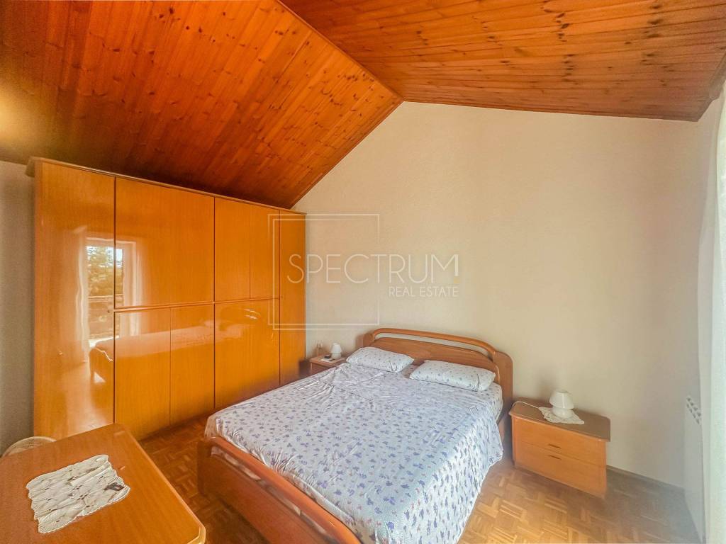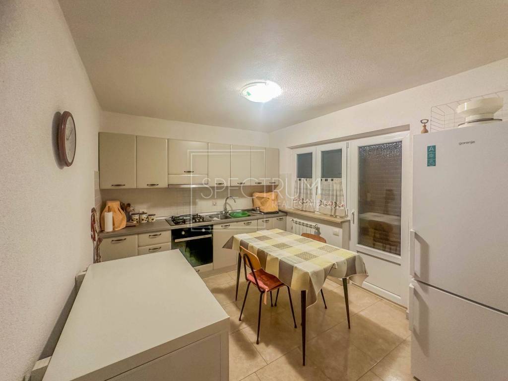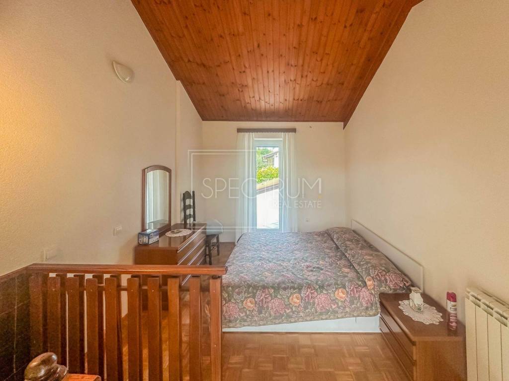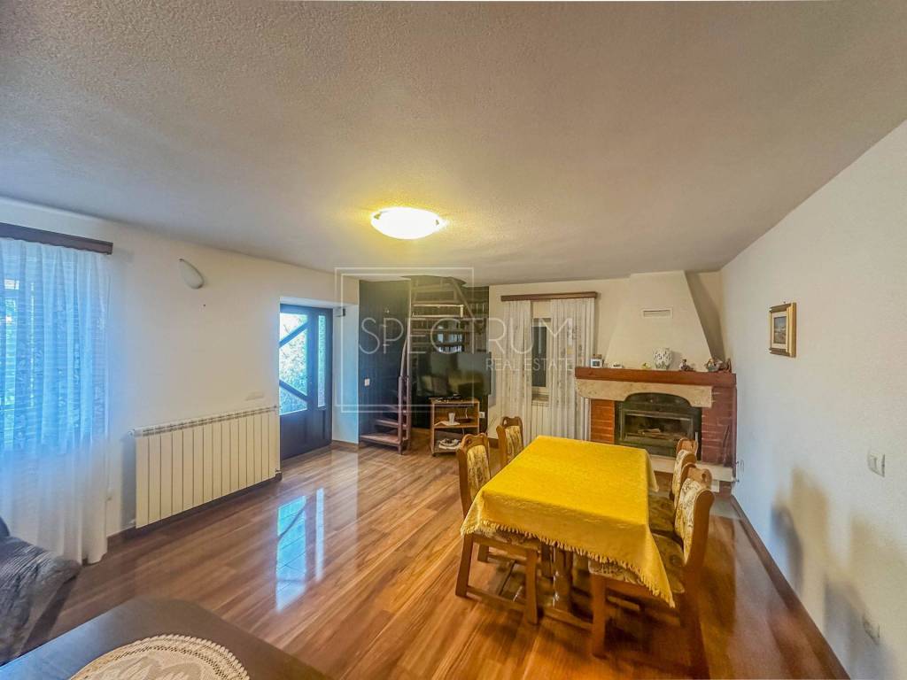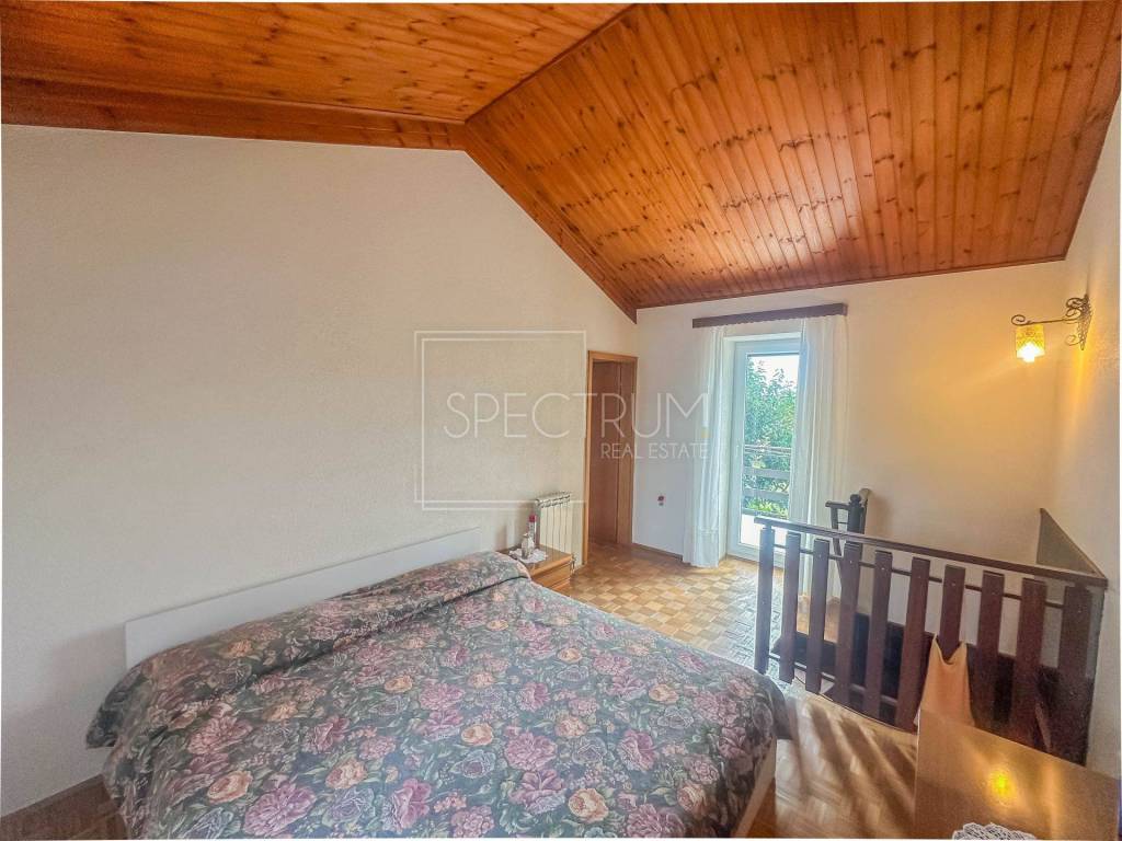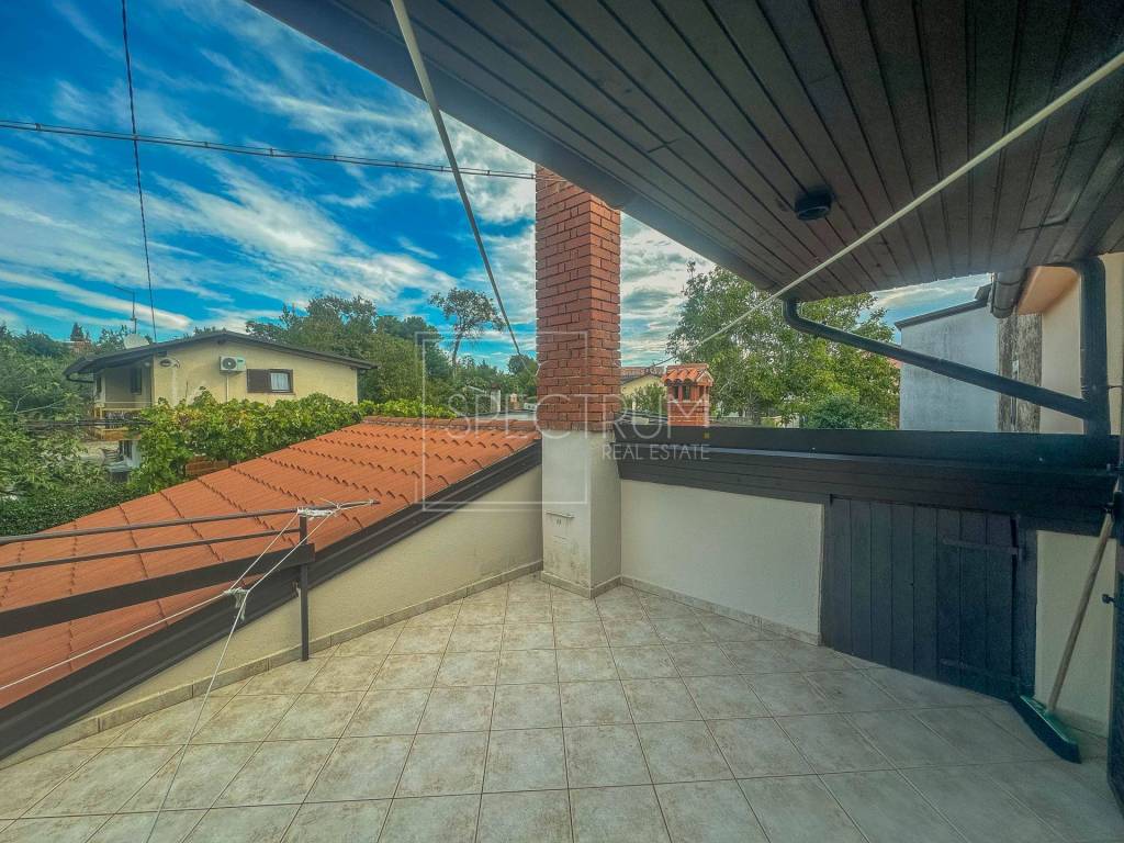 Površina ove renovirane istarske krajnje kuće u nizu iznosi 127 m2, a kuća se proteže kroz prizemlje i kat. U prizemlju se nalazi prostrani dnevni boravak sa kaminom, kuhinja, blagovaonica, kupaonica, ostava i manji hodnik. Unutarnjim stepenicama se dolazi do kata gdje se nalaze 2 spavaće sobe i 2 terase. Jedna spavaća soba ima izlaz na obje terase, dok druga spavaća soba ima izlaz na jednu zajedničku terasu. Sa prednje strane kuće, ispred ulaza, nalazi se veranda, a sa bočne strane nalazi se natkrivena terasa, idealna za uživanje. Kuća se grije putem centralnog grijanja na drva. Kuća se prodaje namještena.
