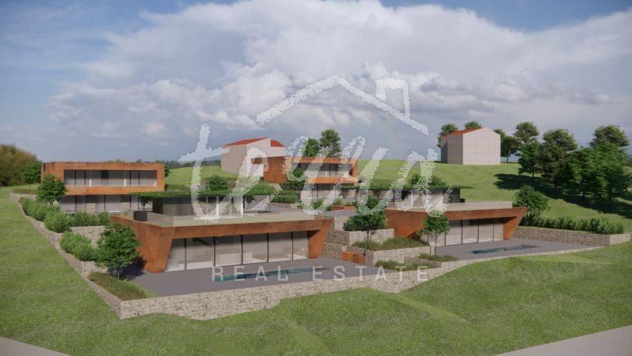 MOTOVUN okolica,građenisko zemljište sa projektom za 4 Ville sa bazenima