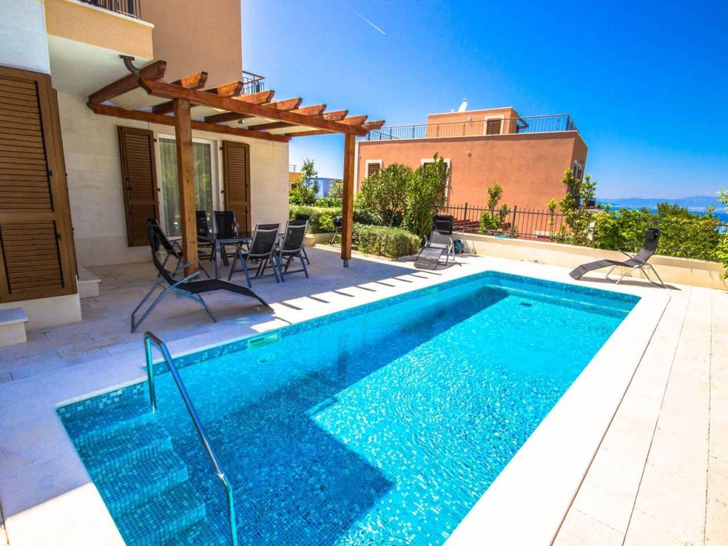 Na krovnu terasu dolazi se unutarnjim stepenicama, odakle se pruža prekrasan pogled na more. Natkrivena pergola.
