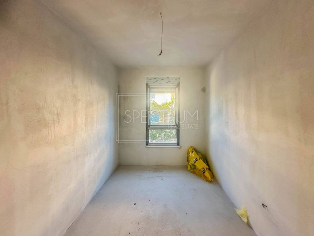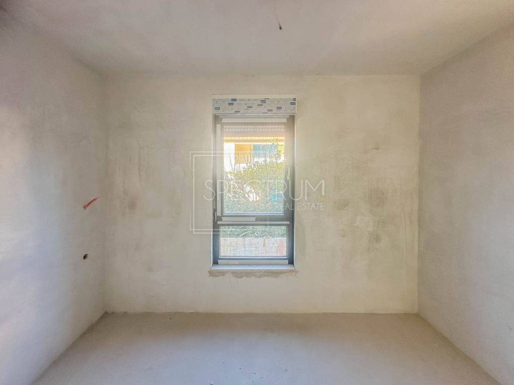 Stan se nalazi na 1.katu novoizgrađene stambene zgrade. Neto površina stana iznosi 57 m2. Stan se sastoji od open space dnevnog boravka sa kuhinjom i blagovaonicom, 2 spavaće sobe, kupaonice, hodnika i terase, idealne za uživanje na otvorenome. Sa terase se dolazi do vrta površine 23.10 m2 koji je također u vlasništvu stana.
