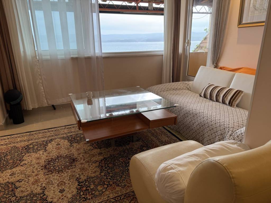 Glavna jedinica sastoji se od 120 m2 na dvije etaže. Potpuno opremljena Bosch kuhinja, dnevni boravak s električnim kaminom, 2 spavaće sobe (queen size i king size), 2 kupaonice: jedna s hidromasažnom kadom, jedna s kišnim tušem + parnom sobom, walk-in ormar i praonica rublja, 36 m² na dvije terase s pogledom na more, prozori od poda do stropa i panoramski prozori, podno grijanje u kupaonicama i jednoj spavaćoj sobi. ,