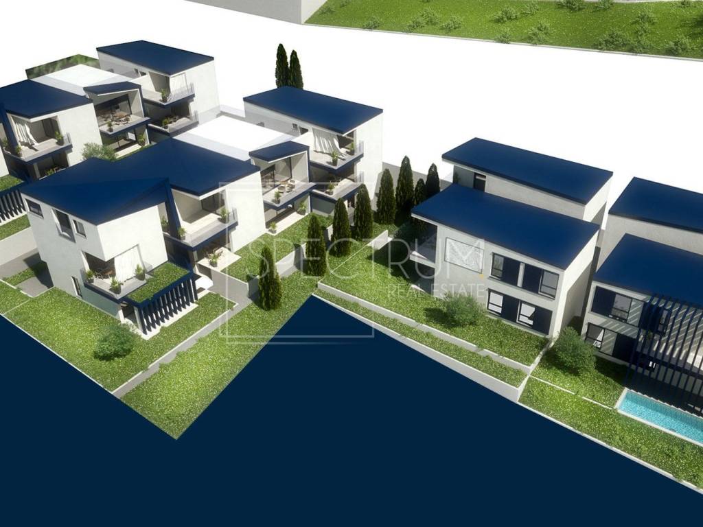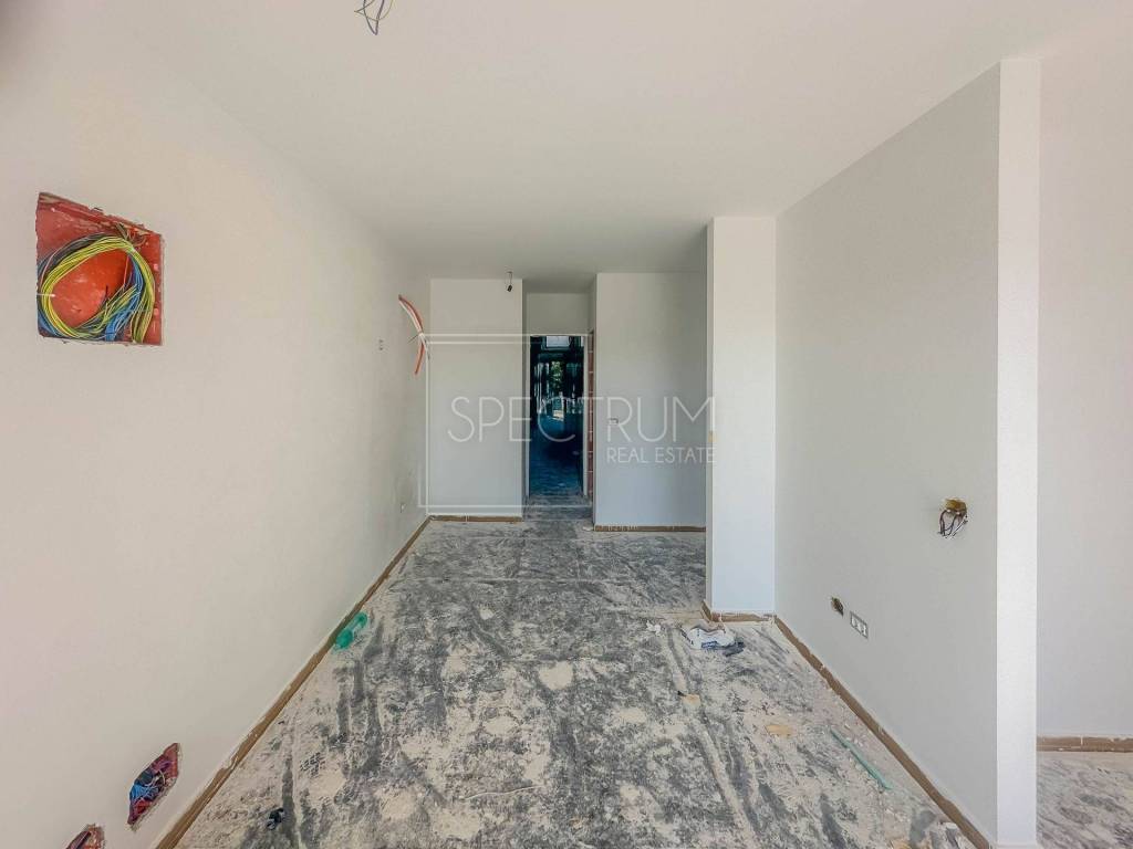 Stan se nalazi na 1.katu novoizgrađene stambene zgrade. Neto površina stana iznosi 54.90 m2. Stan se sastoji od open space dnevnog boravka zajedno sa kuhinjom i blagovaonicom, 2 spavaće sobe, kupaonice, hodnika i terase sa koje se pruža pogled na more.
