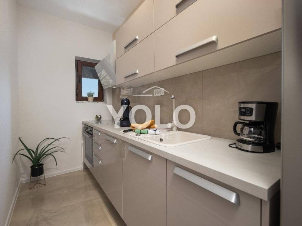 Iznajmljuje se luksuzan stan u Ičićima, površine 65m2. Nalazi se na 1. katu ville. Stan sadrži predsoblje, kuhinju, blagovaonicu, dnevni boravak, terasu, dvije spavaće sobe i dvije kupaonice.