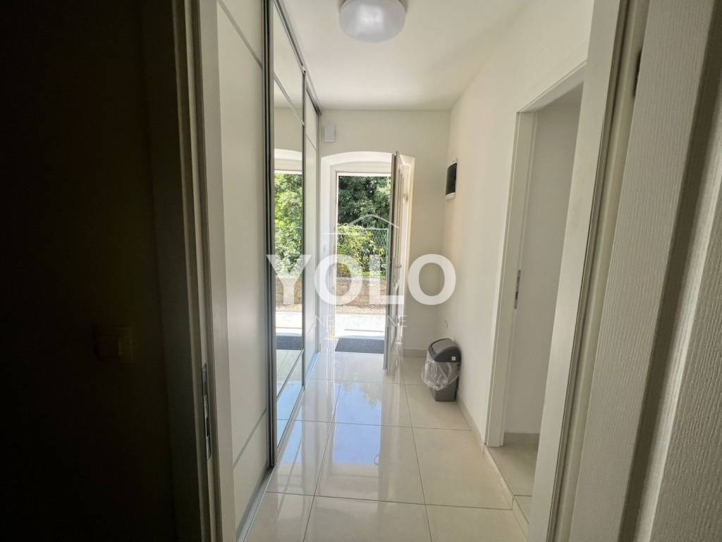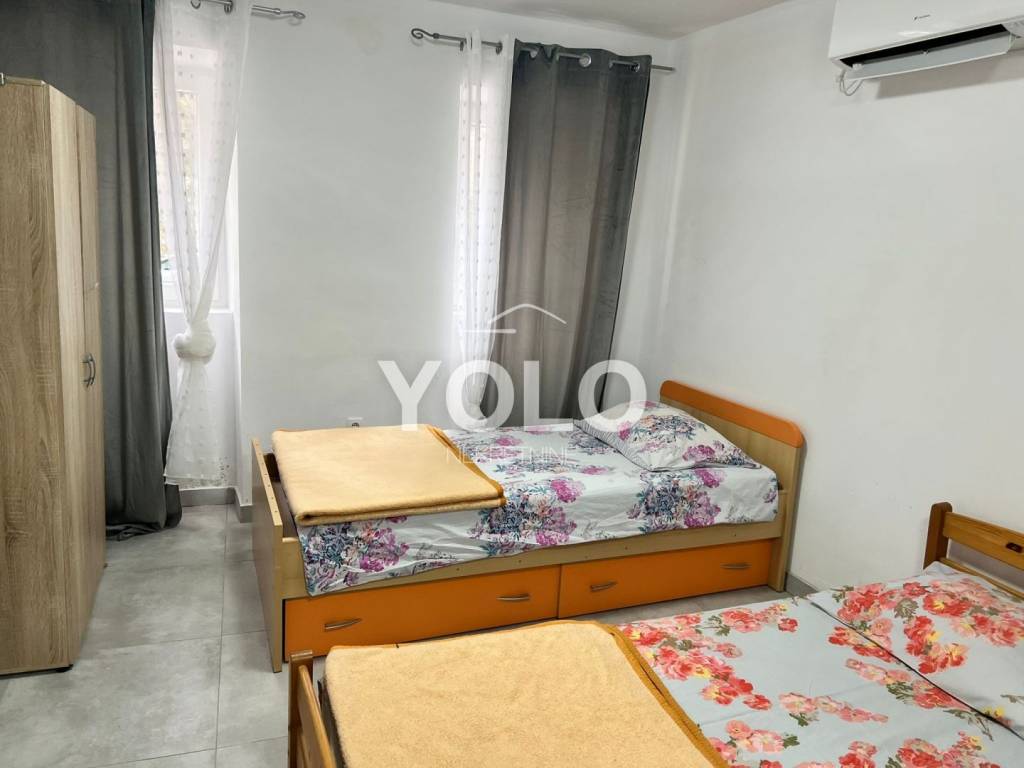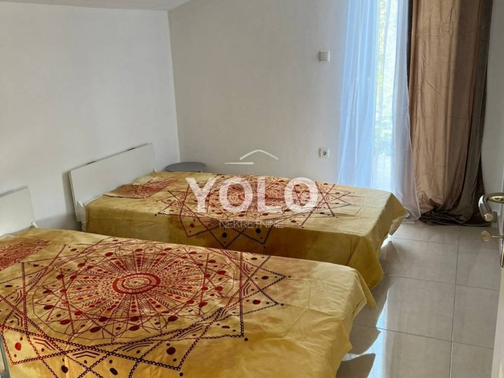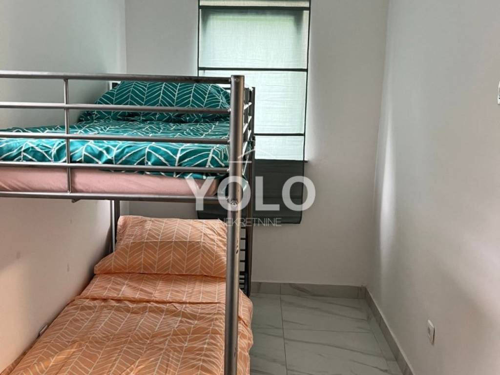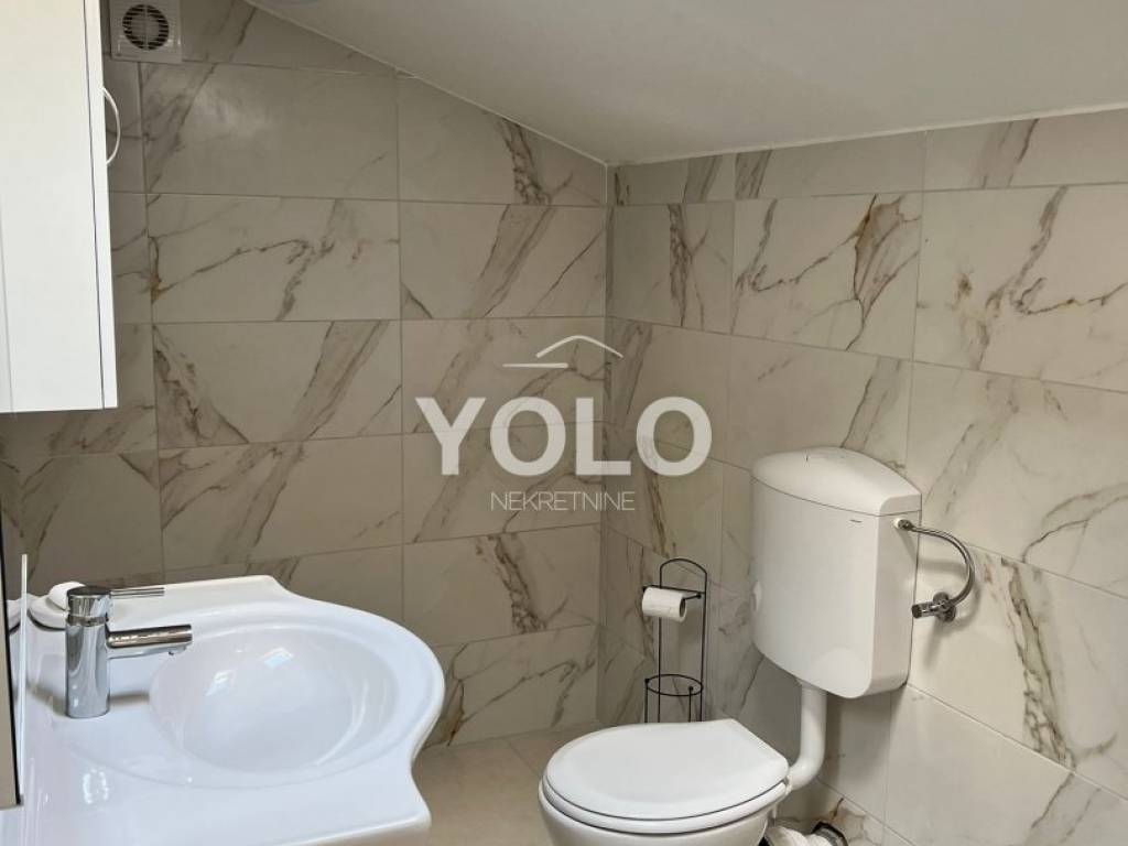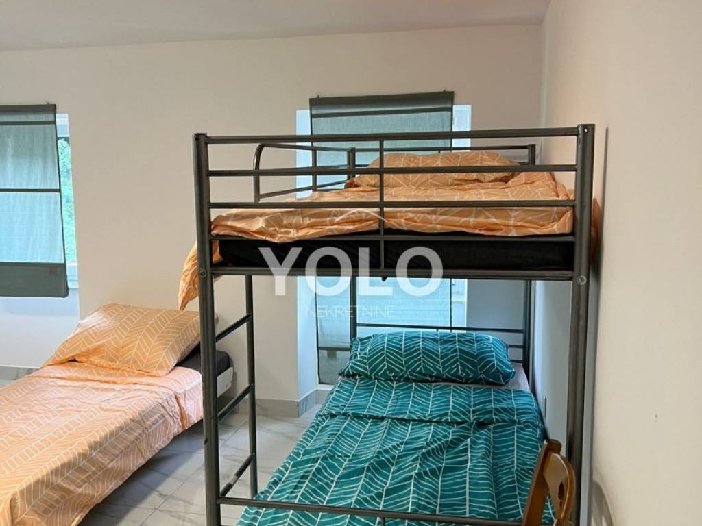 U prizemlju kuće sa lijeve strane ulaz je u jednosobni stan gdje je su zajedno dnevnim boravak kuhinja te blagovaona, kupaonicom i malim ulaznim hodnikom, stan se grije i hladi pomoću klima uređaja. Također u prizemlju kuće ali sa desne strane iste ulaz je za drugi jednosobni stan istog rasporeda osim šta ovaj stan ima dodatni ugradbeni ormar u hodniku. Na prvom katu kuće odmah sa lijeve strane je prostor najsličniji studio apartmanu ali u ovom slučaju iskorišten je za prostor vešeraja. Na tom istom katu je ulaz za drugu stambenu jedinicu gdje se nalazi dvosoban stan sa dnevnim boravkom, blagovaonom i kuhinjom u istom prostoru , kupatilom , stan se grije i hladi pomoću klime. U potkrovlju kuće smještena je zadnja peta jedinica koja se sastoji od trosobnog stana, dnevnog boravka zajedno sa blagovaonicom i kuhinjom te kupatilom. Stan se grije i hladi pomoću klima uređaja. Kuća idealna za investiciju. Cijena na upit.