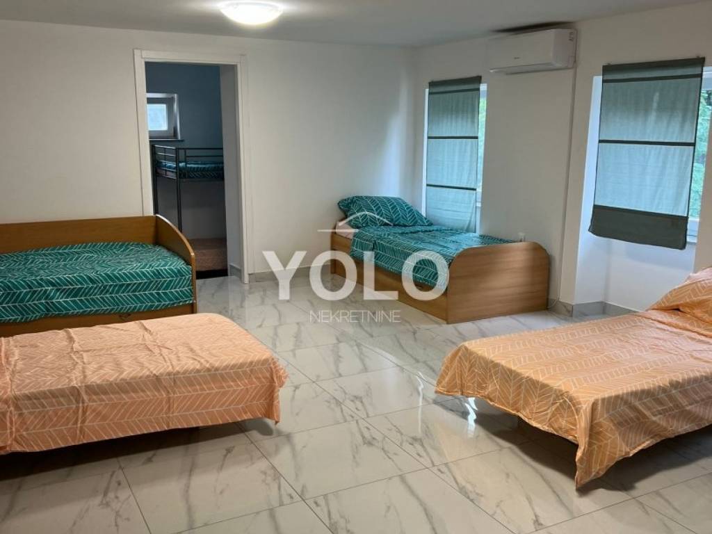 U Kostreni posredujemo u prodaji kuće koja ima pet stambenih jedinica gdje svaki stan ima vlastiti ulaz. Kuća je trenutno orijentirana za smještaj radnika te pri kupnji iste moguće je dalje preuzeti ugovorene najmove.