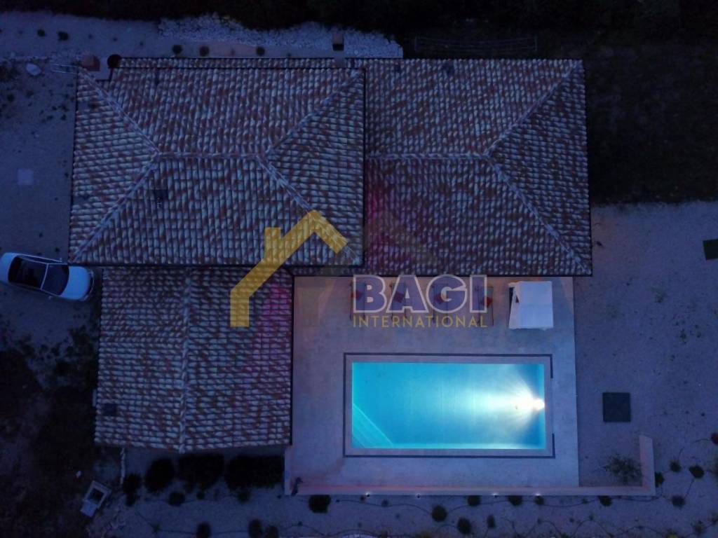 Okućnica je njegovana, ograđena i opremljena sustavom automatskog navodnjavanja. Bazen sa slanom vodom površine 42 m² opremljen je toplinskom pumpom za grijanje i hlađenje, a upravljanje temperaturom moguće je putem mobilnog uređaja, što vam omogućuje da bazen zagrijete prije dolaska.