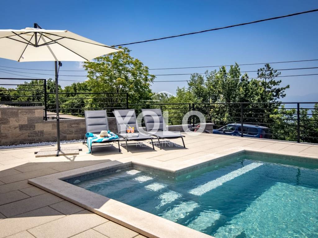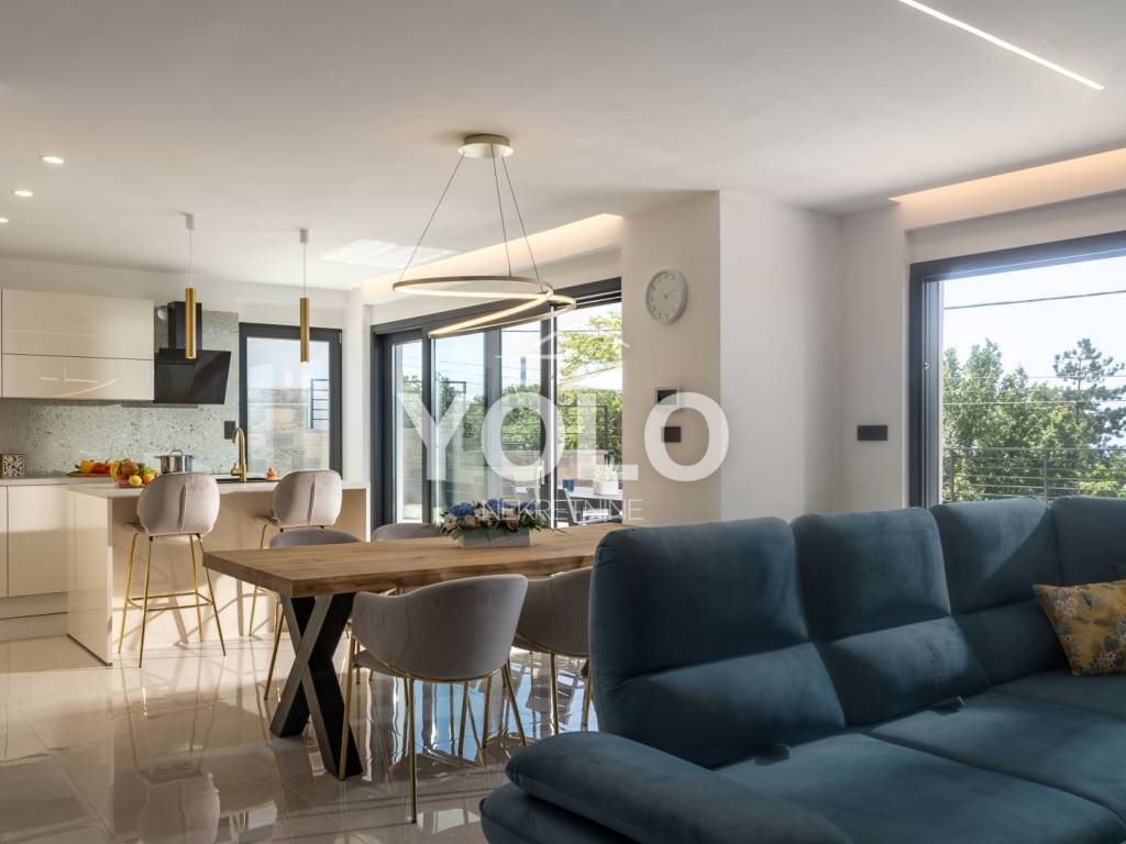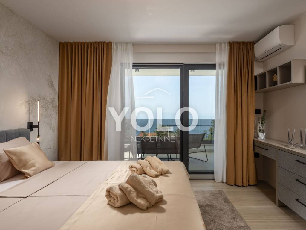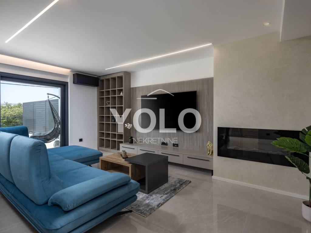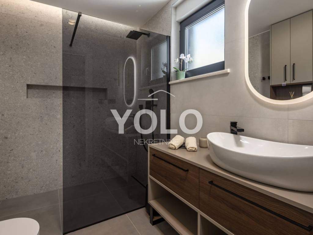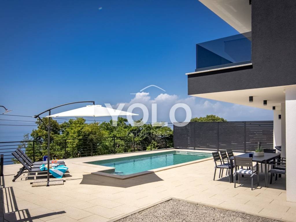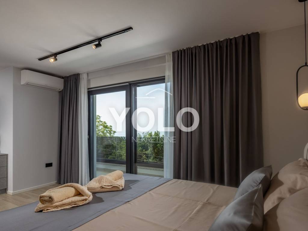 Na prodaju je ekskluzivna luksuzna dvojna vila s privatnim bazenom i otvorenim pogledom na more, smještena na atraktivnoj i mirnoj lokaciji. Vila se prodaje u potpunosti namještena s pažljivo biranim kvalitetnim namještajem i opremom, spremna za useljenje ili odmah za turistički najam.
