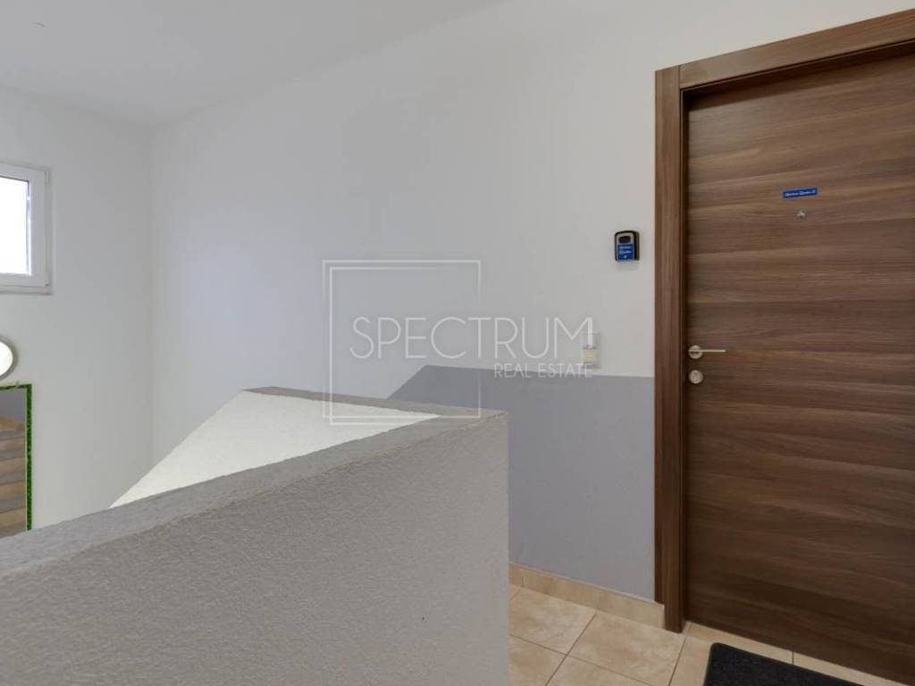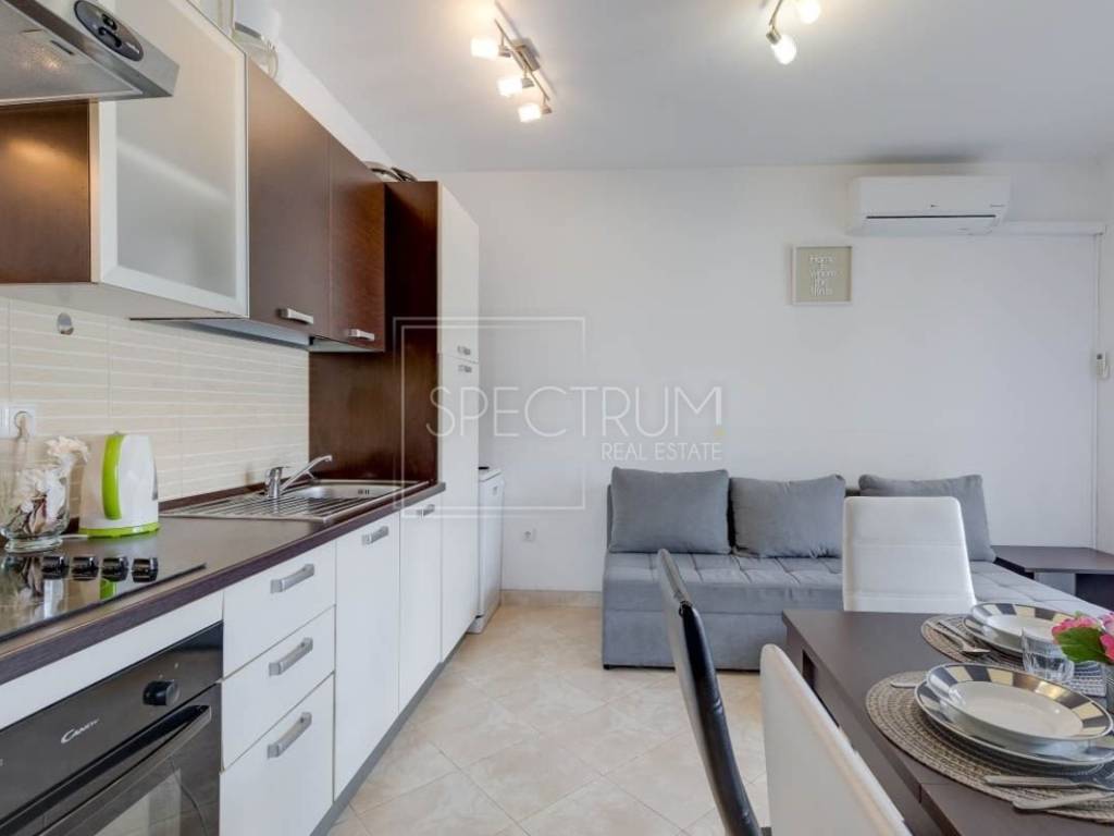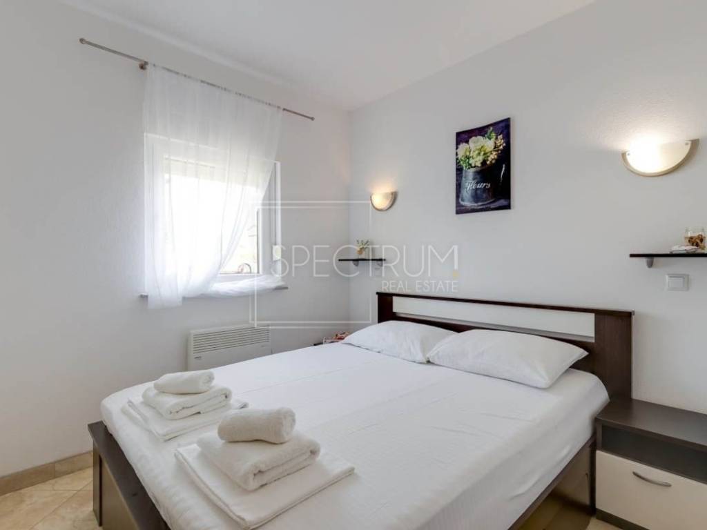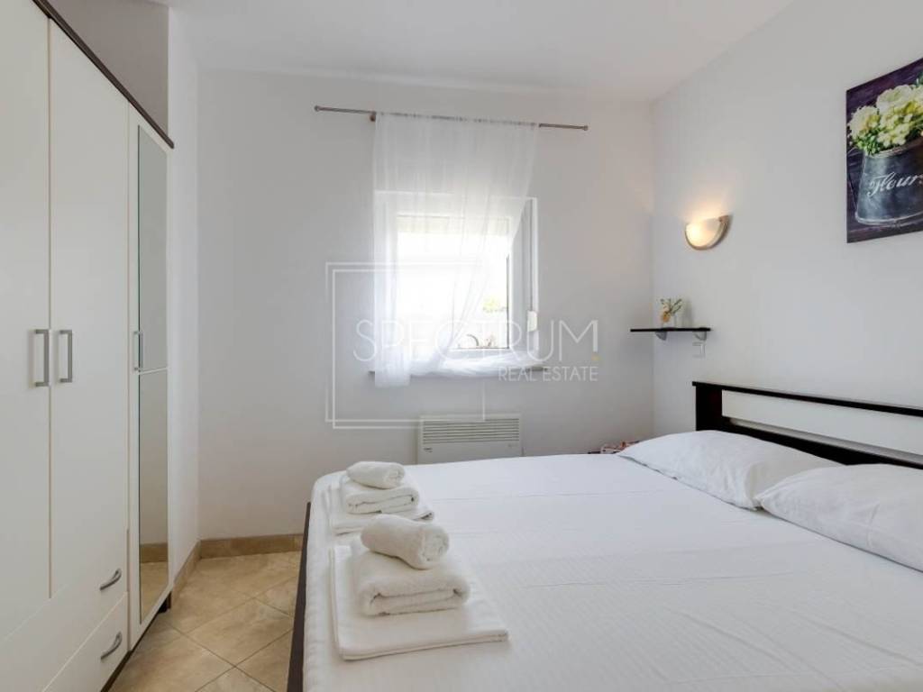 Oba stana imaju praktički isti raspored prostorija, a jedan je stan smješten u prizemlju, dok se drugi stan nalazi na 1.katu manje stambene zgrade. Površina stana u prizemlju iznosi 31.80 m2. Stan se sastoji od ulaznog hodnika, dnevnog boravka sa kuhinjom i blagovaonicom open space koncepta, spavaće sobe, kupaonice i natkrivene terase. Na terasu se dolazi iz dnevnog boravka. Sa terase se dolazi do vrta.