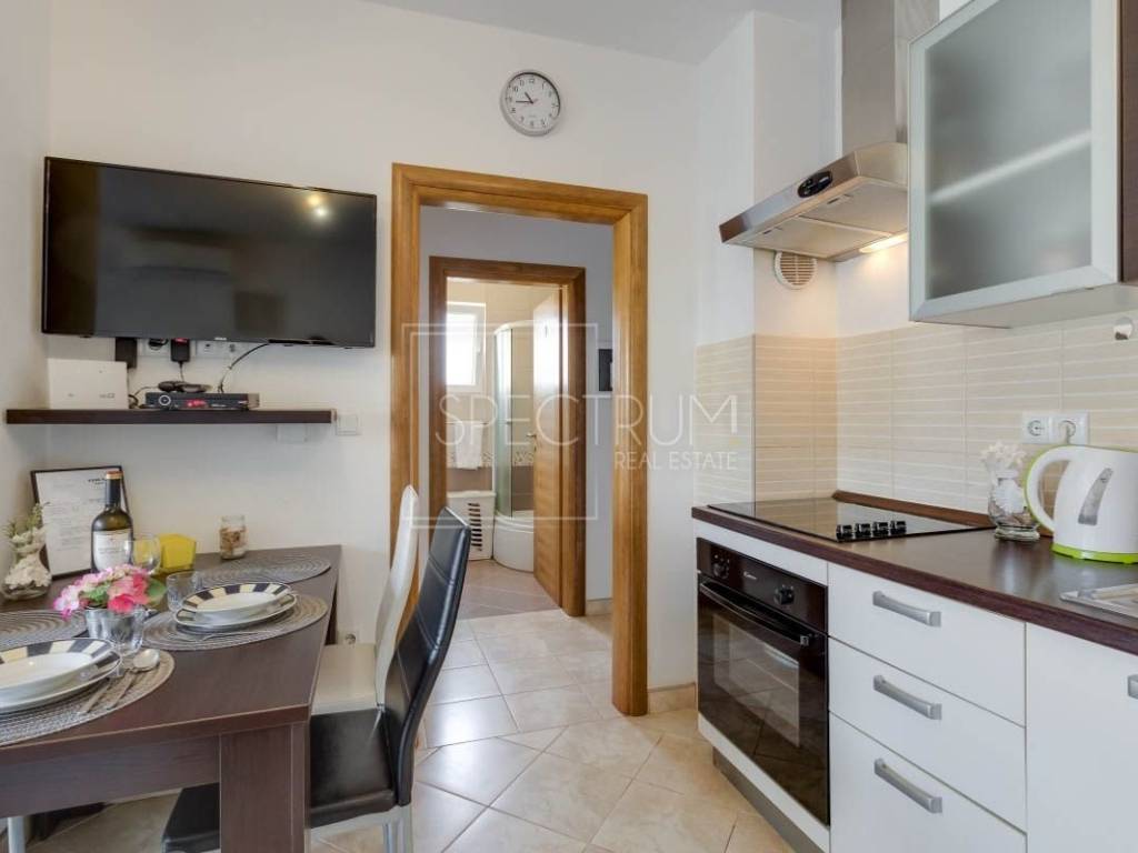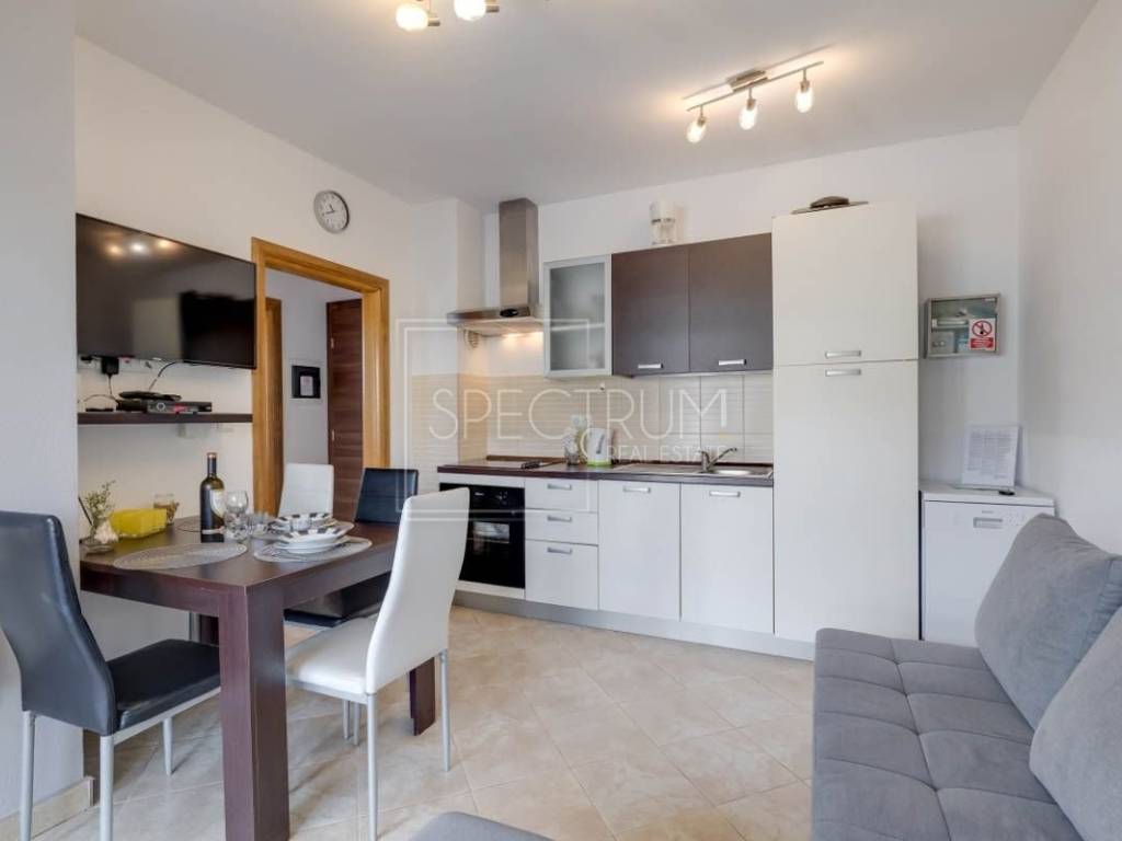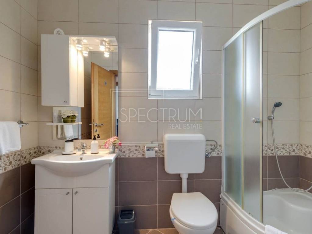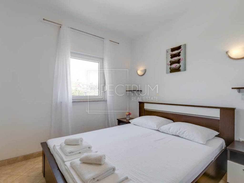 Oba stana imaju praktički isti raspored prostorija, a jedan je stan smješten u prizemlju, dok se drugi stan nalazi na 1.katu manje stambene zgrade. Površina stana u prizemlju iznosi 31.80 m2. Stan se sastoji od ulaznog hodnika, dnevnog boravka sa kuhinjom i blagovaonicom open space koncepta, spavaće sobe, kupaonice i natkrivene terase. Na terasu se dolazi iz dnevnog boravka. Sa terase se dolazi do vrta.