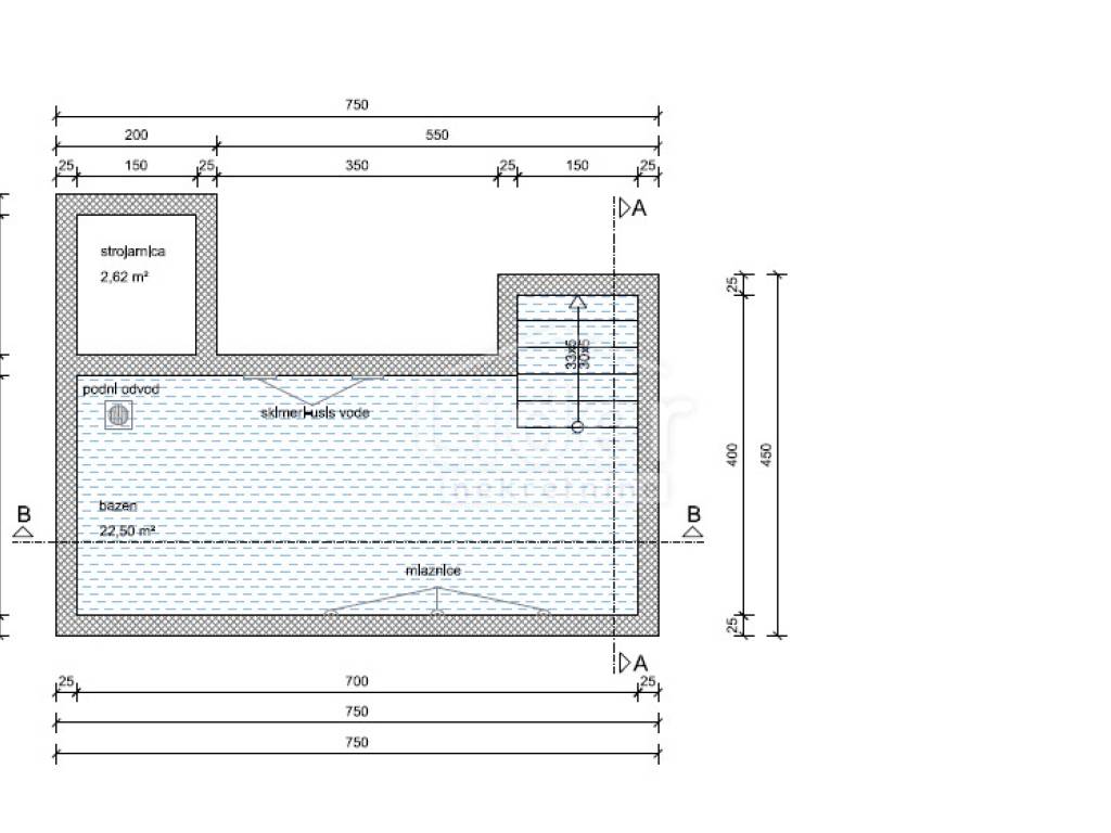 Na ograđenoj okućnici predviđena je i garaža od 45 m2.