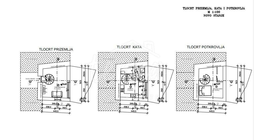 - prizemlje: dnevni boravak otvorenog tipa,staklene stijene sa izlazom na terasu i otvoren panoramski pogled na more,