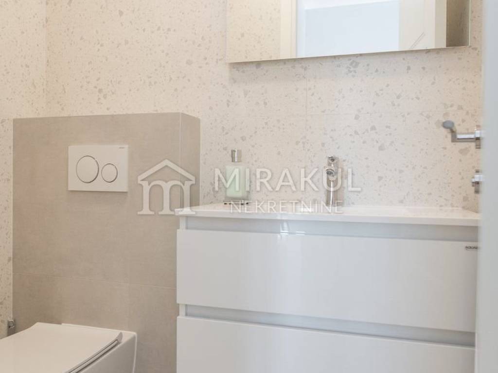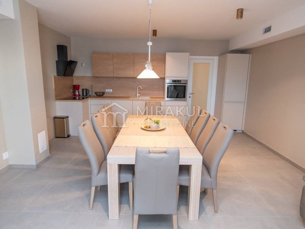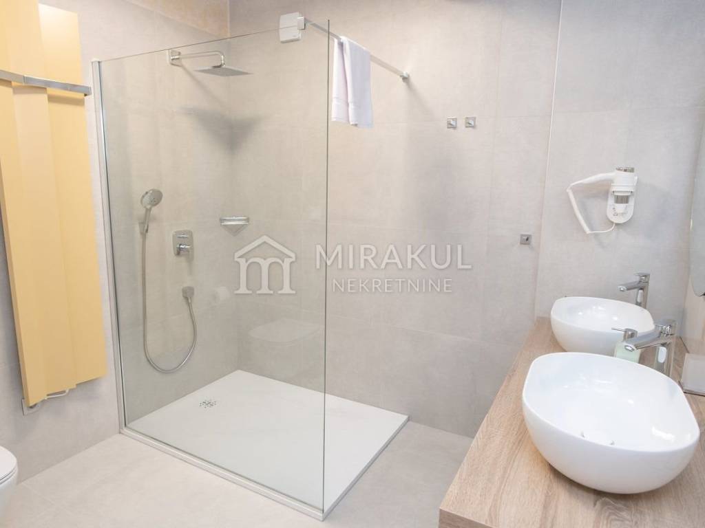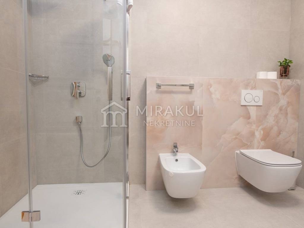 Sastoji se od hodnika, wc-a, spavaće sobe sa kupaonicom, kuhinje, blagovaonice i dnevnog boravka, te očaravajuće natkrivene terase sa prekasnim pogledom.