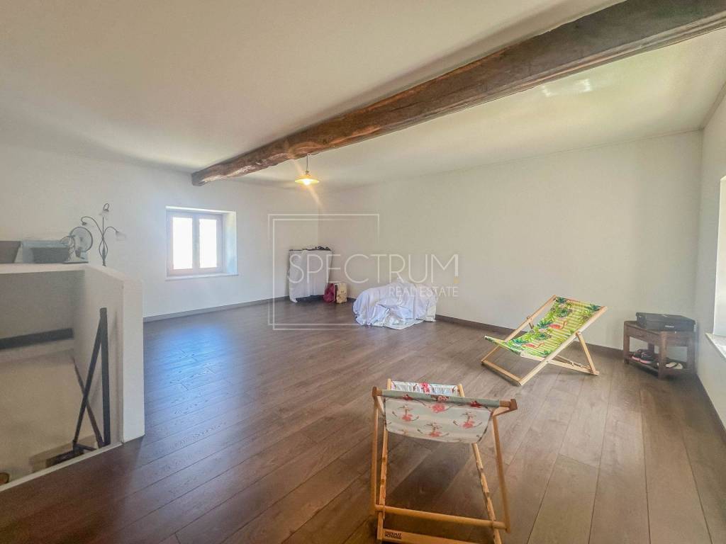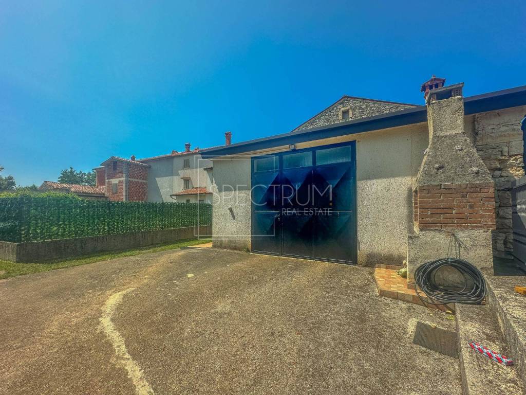 Površina ove kamene krajnje kuće u nizu iznosi 84 m2. Kuća se proteže kroz prizemlje i kat. U prizemlju kuće se nalazi dnevni boravišni prostor sa kaminom. Unutarnjim stepenicama dolazi se do kata gdje se nalazi jedna veća open space prostorija koja se može urediti kao spavaća soba, a postoji mogućnost pregrađivanja zida kako bi se dobila još jedna soba. Također, postoji mogućnost dodatne nadogradnje kuće na katu. Međukatna konstrukcija kuće je betonska. S obzirom da kuća ima dimnjak, grijanje je regulirano putem kamina. Kuću karakteriziraju debeli istarski zidovi te drveni elementi koji kuću daje autohtoni šarm. Kuća zahtijeva određenu adaptaciju.