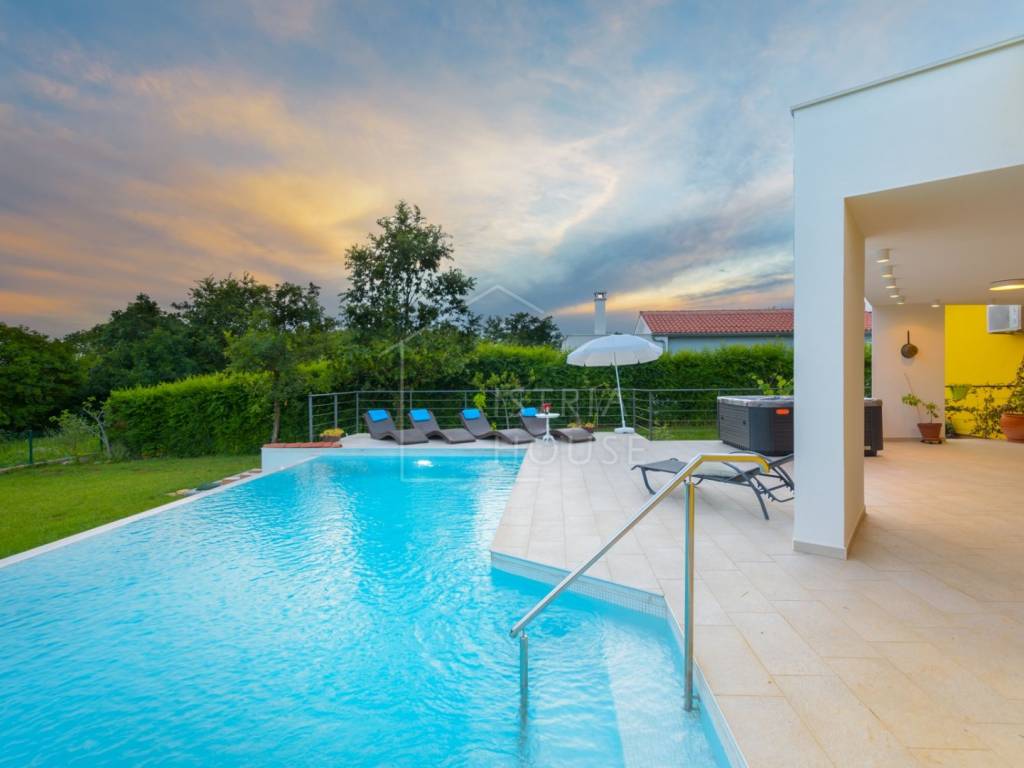 Prodaje se moderno izgrađena vila smještena u centralnoj Istri nedaleko srednjovjekovnog gradića Svetvinčenta poznatog po svojim festivalima i ljetnim manifestacijama. Pozicija nekretnine je isto tako idealno smještena zbog toga što od ulaska na autoput ste udaljeni svega 10 minuta vožnje.