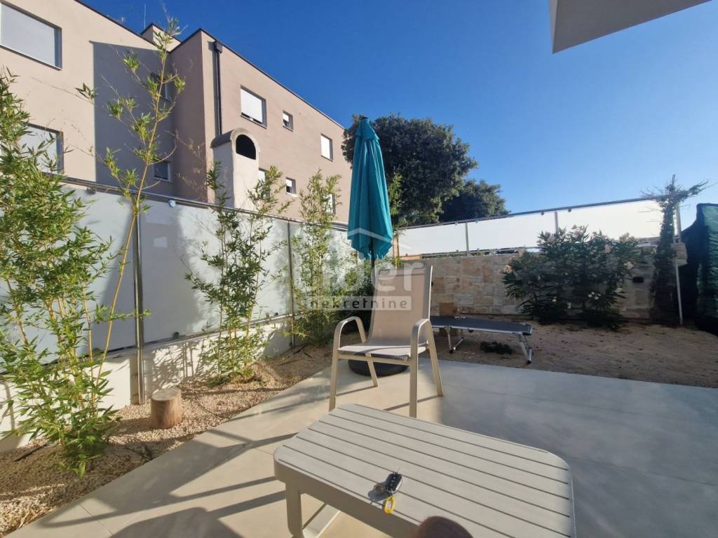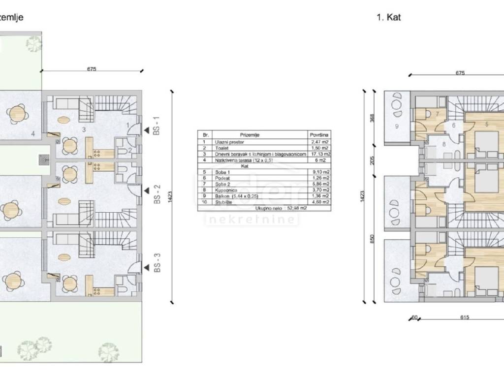 Sastoji od prizemlja i kata, terase u prizemlju, balkona i dvorista, te se nalazi u zgradi sa tri stana i ima zaseban ulaz i dva parking mjesta.
