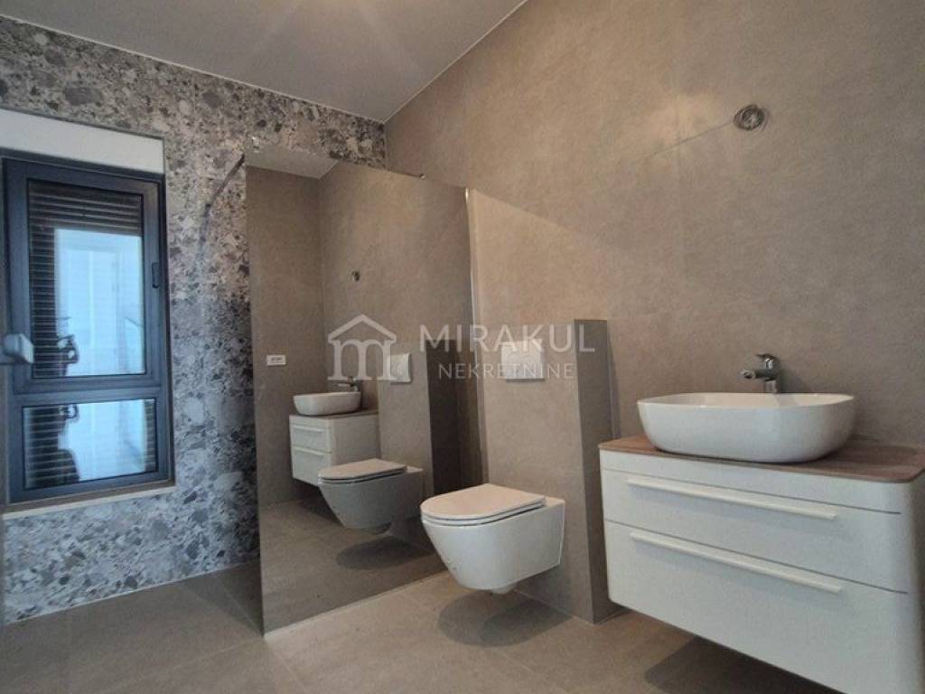 Sastoji se od 3 spavaće sobe, 2 kupaonice, nenatkrivene terase i dvije natkrivene terase, te hodnika.