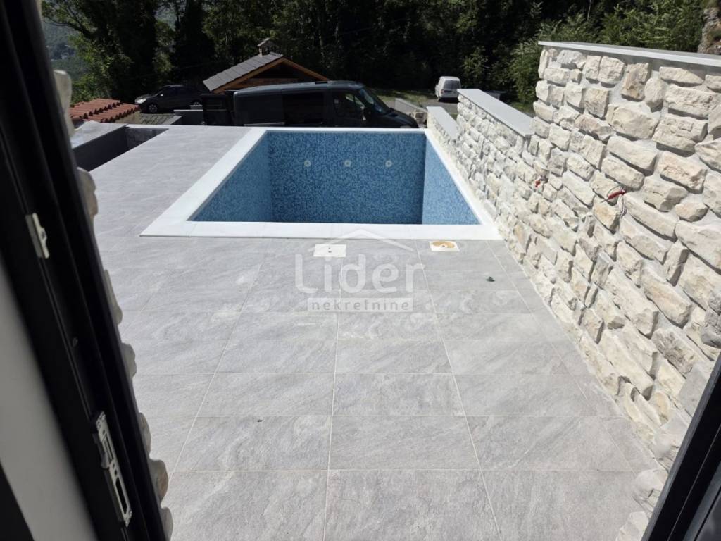 Osim bazena na okućnici se nalaze i natkriveni prostor za druženje, roštinj te odvojen, uređen prostor za parkiranje više auta.