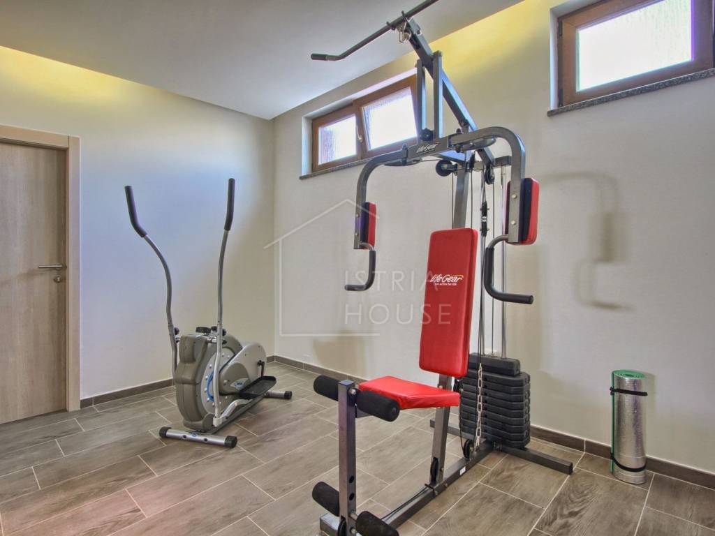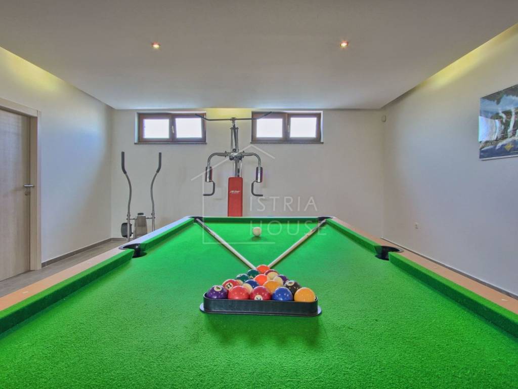 Villa se sastoji od podruma, kao multifunkcionalnog prostor ( fitness, sportske sprave, društvene igre te kotlovnica), prizemlja gdje je smještena jedna spavaća soba sa svojom vlastitom kupaonicom, potom dnevni prostor sa kuhinjom i blagavaonom, predprostorom trenutno namijenjenim za perilicu i sušilicu rublja te jednom dodatnom kupaonicom za goste. Tu je još izlaz na vanjsku natkrivenu terasu od 36m2.