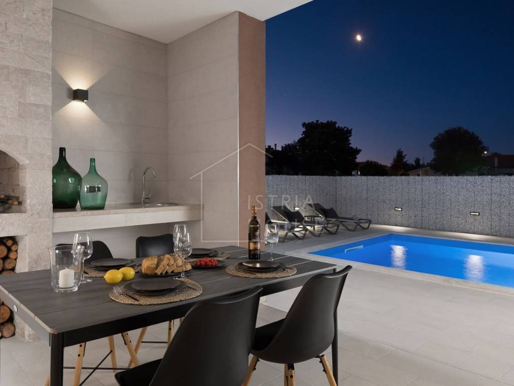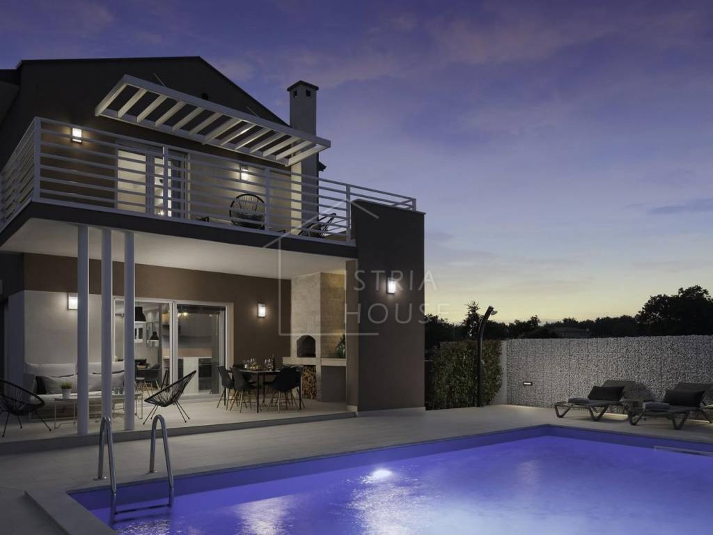 U mirnoj sredini nedaleko Svetvinčenta prodaje se moderno izgrađena vila. Vila se sastoji od prizemlja i prvog kata. U prizemlju pronalazimo dnevni prostor za cjelodnevni boravak, odnosno dnevni boravaka, blagavaonu te kuhinju. u sklopu dnevnog boravka je i dio za druženja sa biljarom kao centralnim dijelom. Tu je još i jedan toalet. Na katu su smještene 3 spavaće sobe moderno dizajnirane svaka sa svojom kupaonicom.