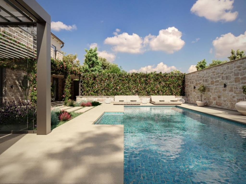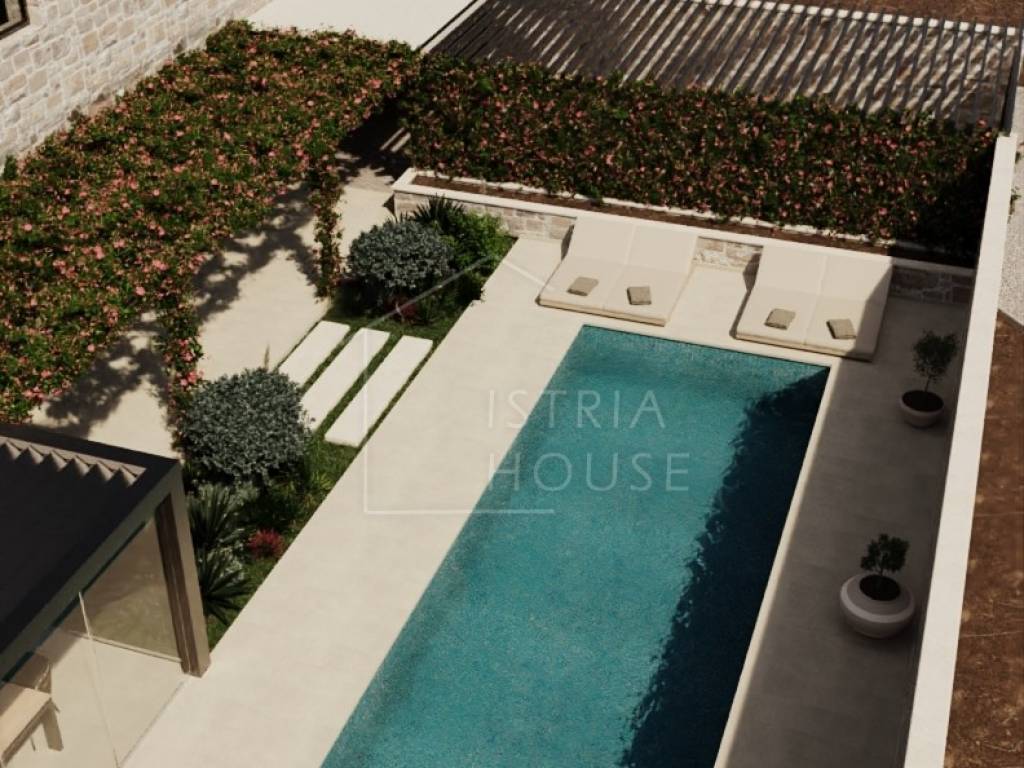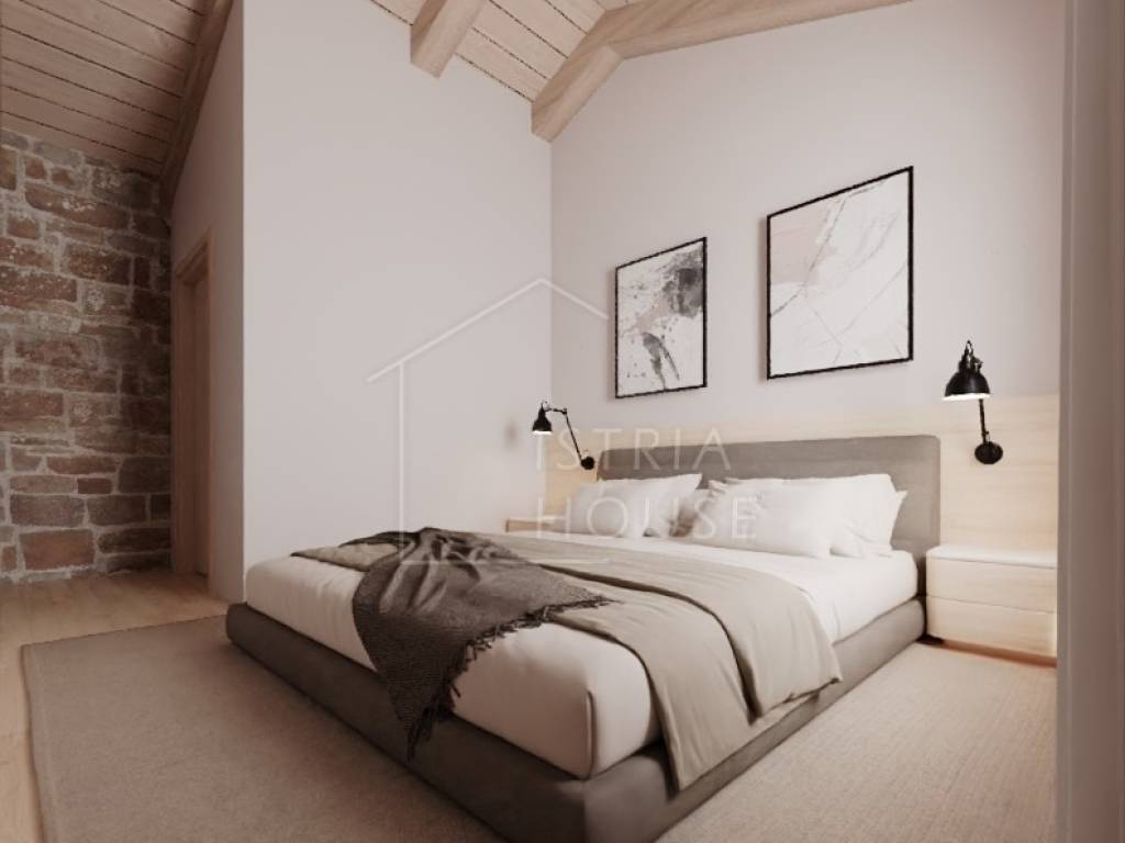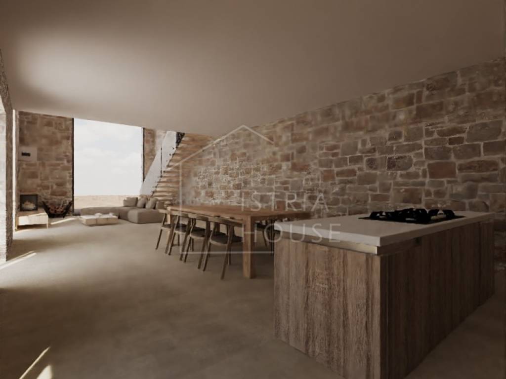 Kuću je potrebno renovirati te za to postoji projekt. Kuća posjeduje svu potrebnu dokumentaciju. Voda i struja u dolasku. Prema projektu poznatog hrvatskog arhitekta kuća je koncipirana na dvije etaže. U prizemlju kuće predviđen je open space prostor koji spaja blagovaonu, kuhinju i dnevni s kojeg se otvara predivan pogled na srednjovjekovni gradić Bale i njegove Venecijanske ljepote. U prizemlju nalazi se još i wc, tehnička soba i ostava. Kroz dnevni boravak po stepenicama dolazimo do prvog kata na kojem se nalaze tri luksuzne spavaće sobe svaka sa svojom kupaonicom. Na prvom katu kroz prozore soba imamo predivni pogled na zelenilo prirode i maslinika.