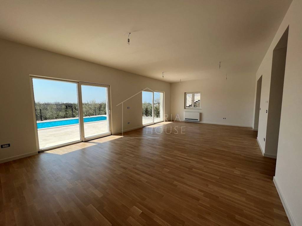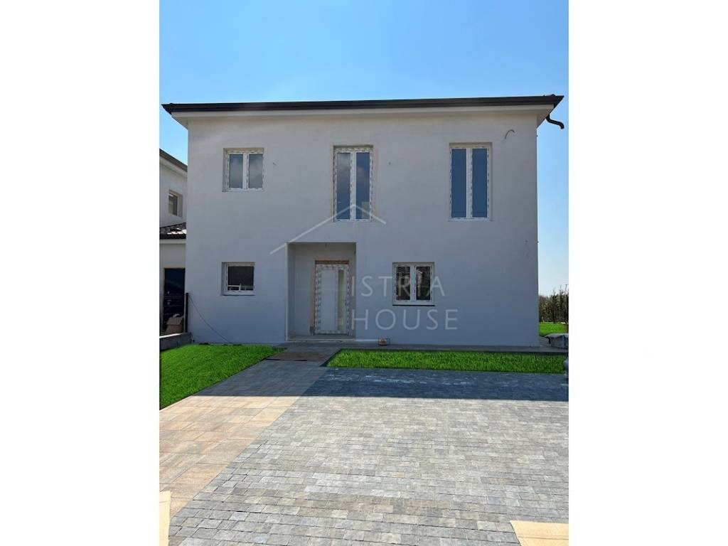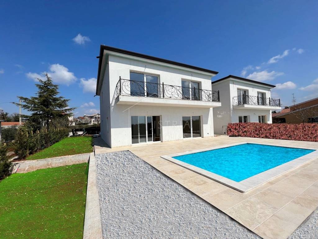 U okolici Poreča prodajemo predivnu modernu dvojnu kuću sa pogledom na more. Nalazi se na mirnoj i lijepoj lokaciji te je udaljena svega 7km od mora.