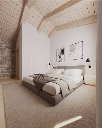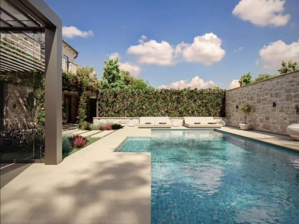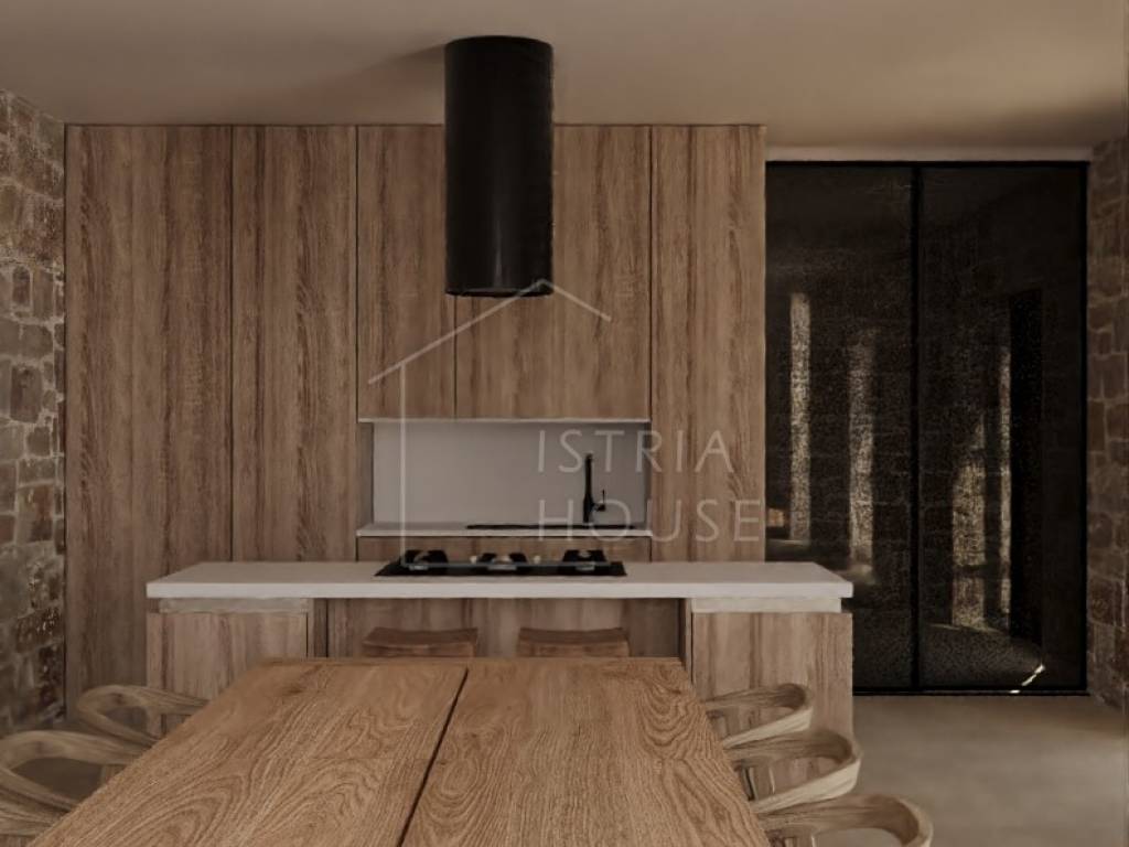 Kuću je potrebno renovirati te za to postoji projekt. Kuća posjeduje svu potrebnu dokumentaciju. Voda i struja u dolasku. Prema projektu poznatog hrvatskog arhitekta kuća je koncipirana na dvije etaže. U prizemlju kuće predviđen je open space prostor koji spaja blagovaonu, kuhinju i dnevni s kojeg se otvara predivan pogled na srednjovjekovni gradić Bale i njegove Venecijanske ljepote. U prizemlju nalazi se još i wc, tehnička soba i ostava. Kroz dnevni boravak po stepenicama dolazimo do prvog kata na kojem se nalaze tri luksuzne spavaće sobe svaka sa svojom kupaonicom. Na prvom katu kroz prozore soba imamo predivni pogled na zelenilo prirode i maslinika.