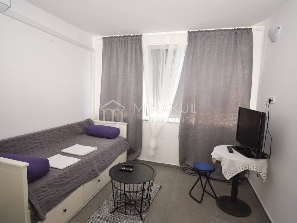Jedan apartman ima dvije spavaće sobe, terasu, kupaonicu, dnevni boravak sa kuhinjom i blagovaonicom.