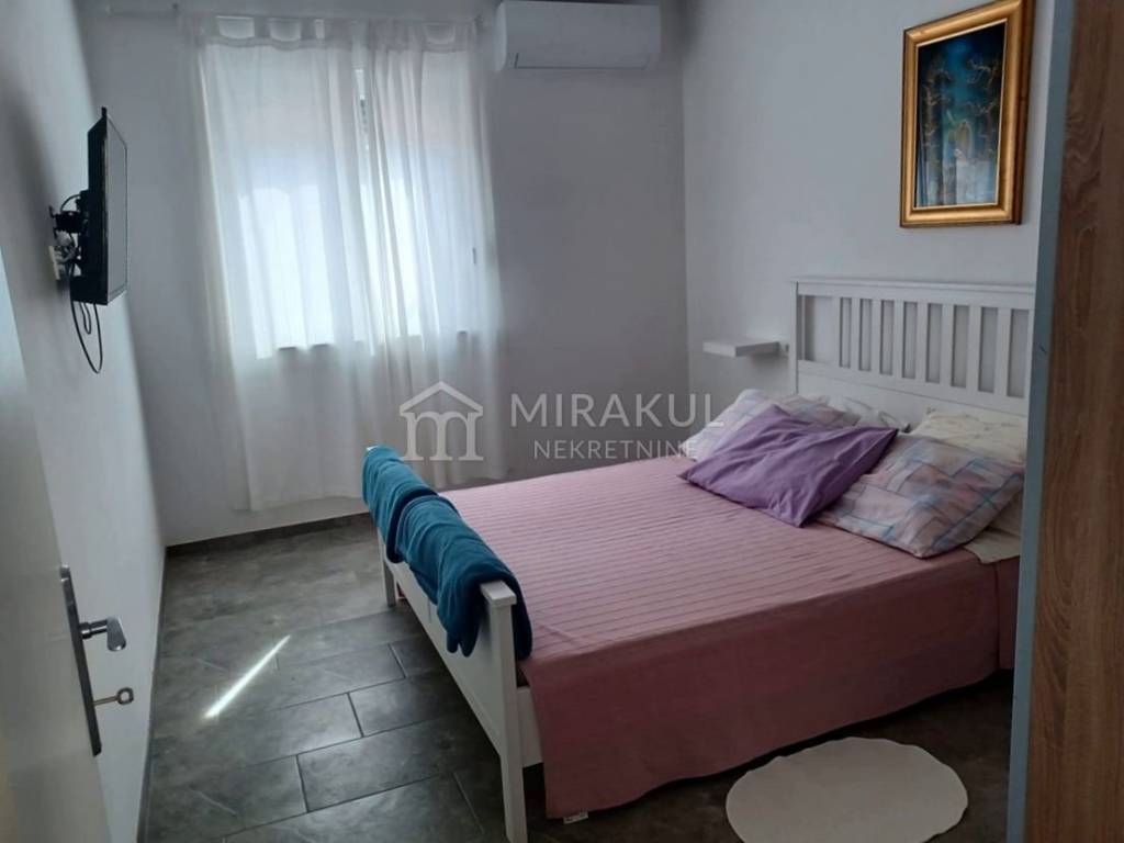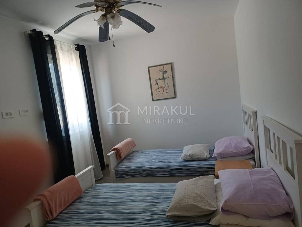 U prizemlju nalazi se stan sa tri spavaće sobe, kupaonicom, dnevnim boravkom, kuhinjom i blagovaonicom, predsobljem, wc, dvije terase.