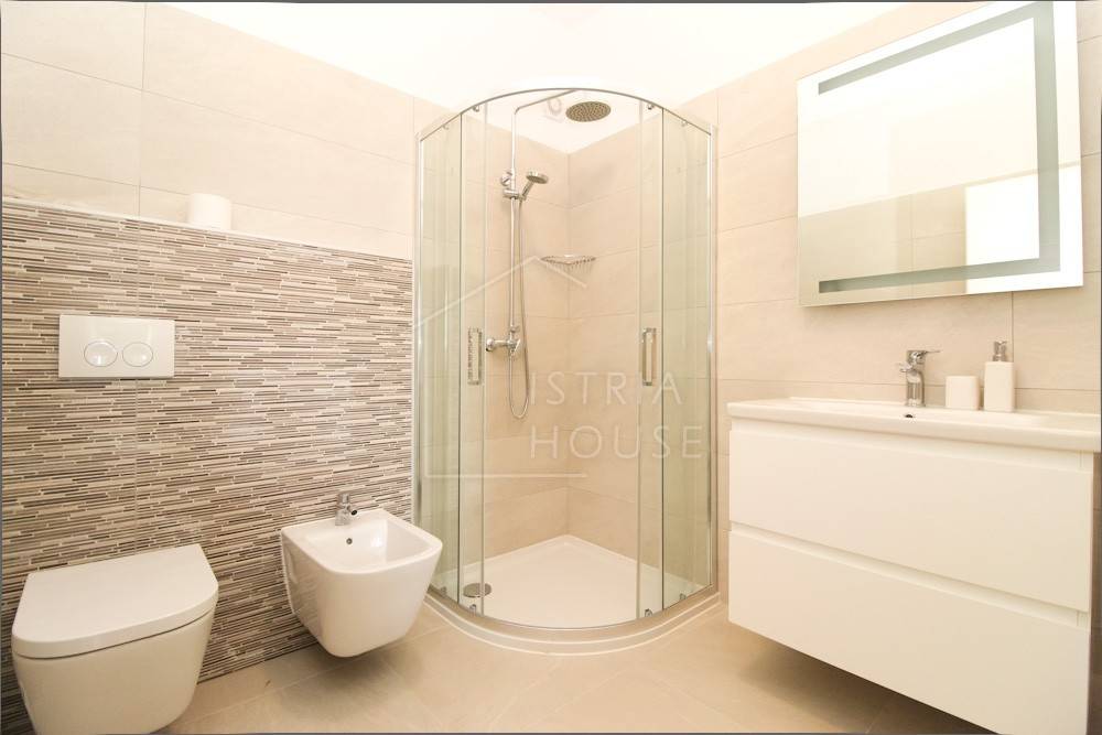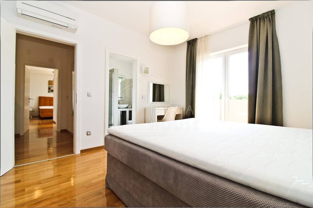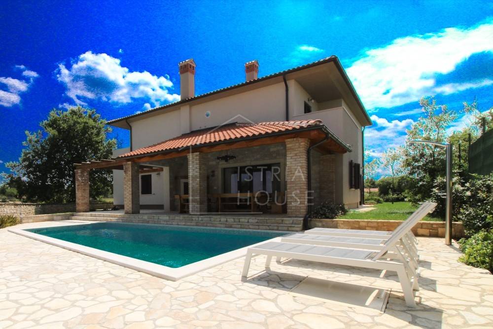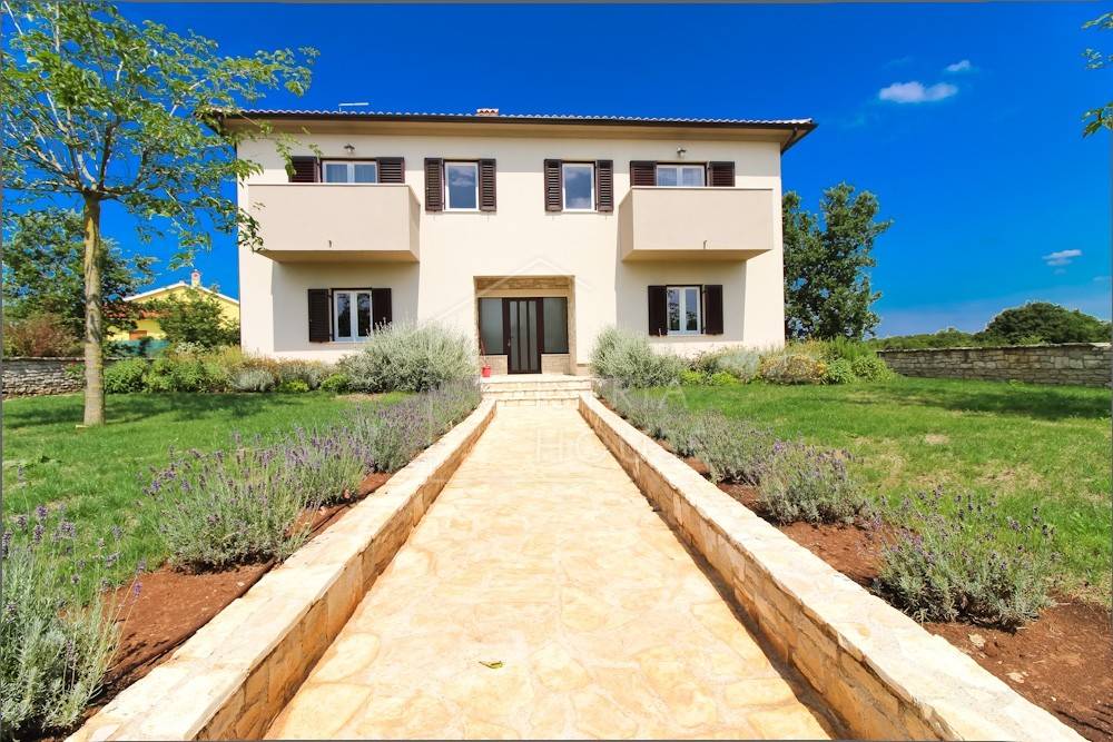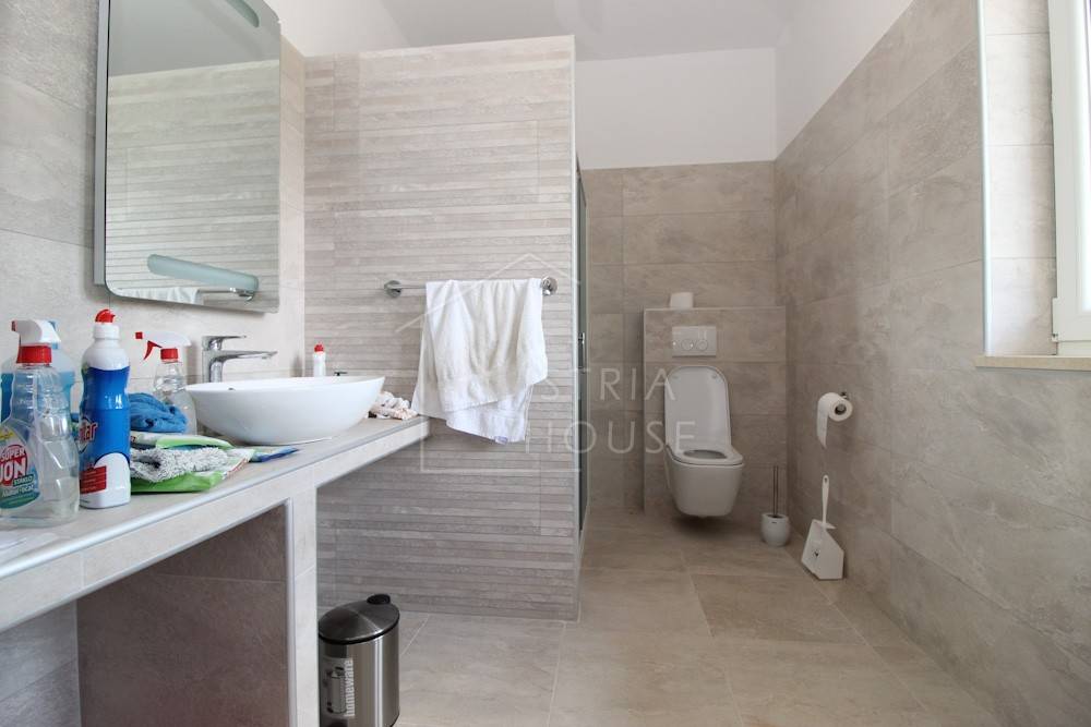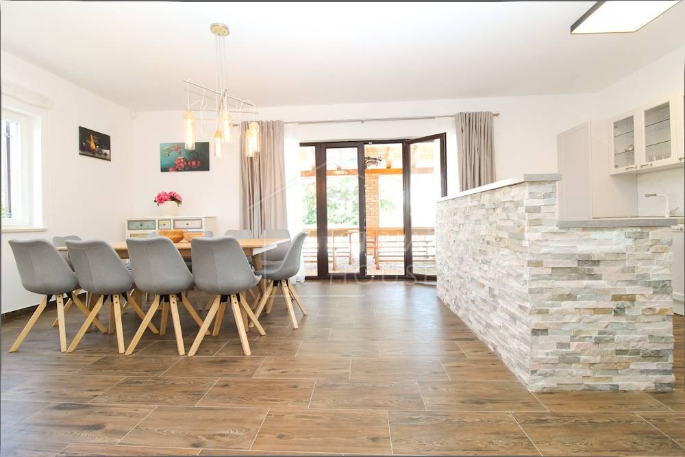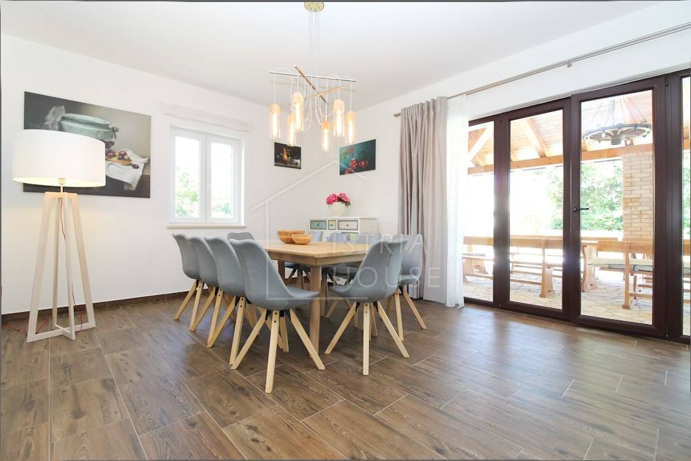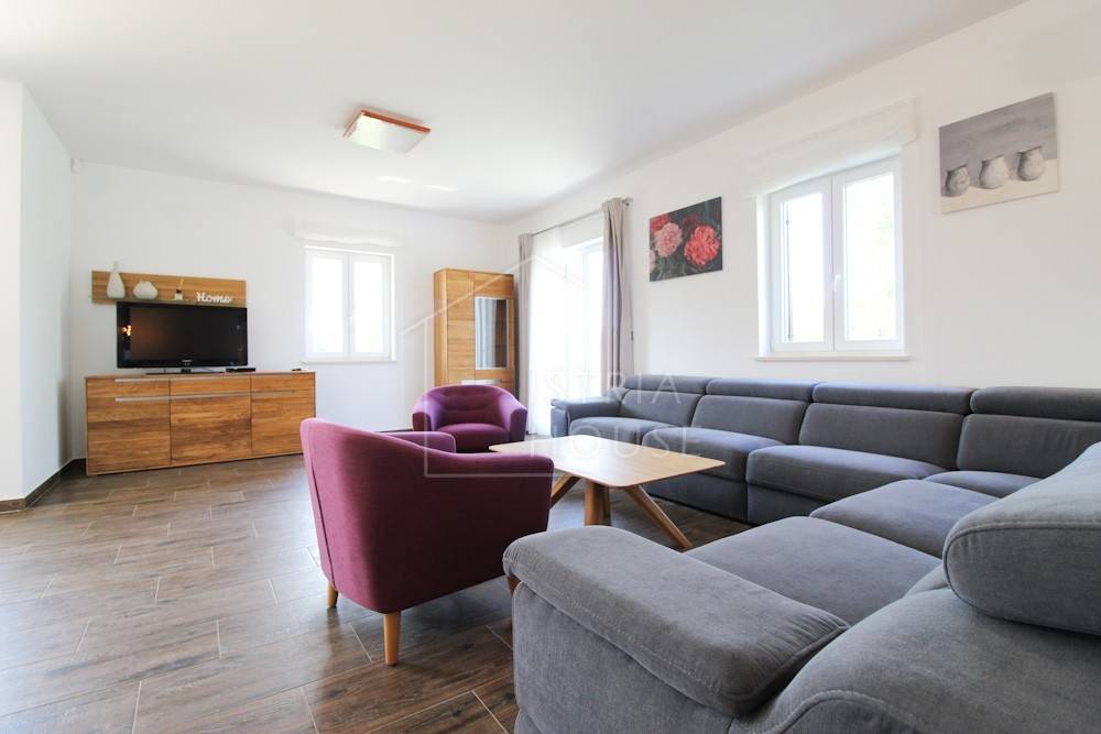 Kuća je izgrađena 2019.-te godine te se od tada uspješno iznajmljuje za boravak turista. Kuća se satoji od prizemlja i prvog kata. Na prvom katu smještene su zajedničke prostorije , odnosno kuhinja, blagavaona te dnevni boravak, jedan gostinjski wc te jedna spavaća soba sa kupaonom. Unutarnjim stepeništem dolazimo do kata gdje su smještene 4 moderne spavaće sobe svaka sa svojom kupaonicom.