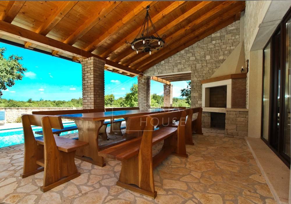 Na vanjskom dijelu se nalazi bazen te ljetna terasa za ugodne boravke i druženja tijekom ljetnih vrućina. Okućnica kuće je kompletno ograđena te tako i prikladna za kućne ljubimce te uređena sa autohtonim biljkama.