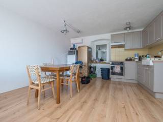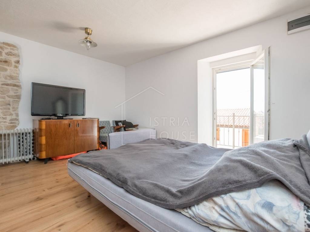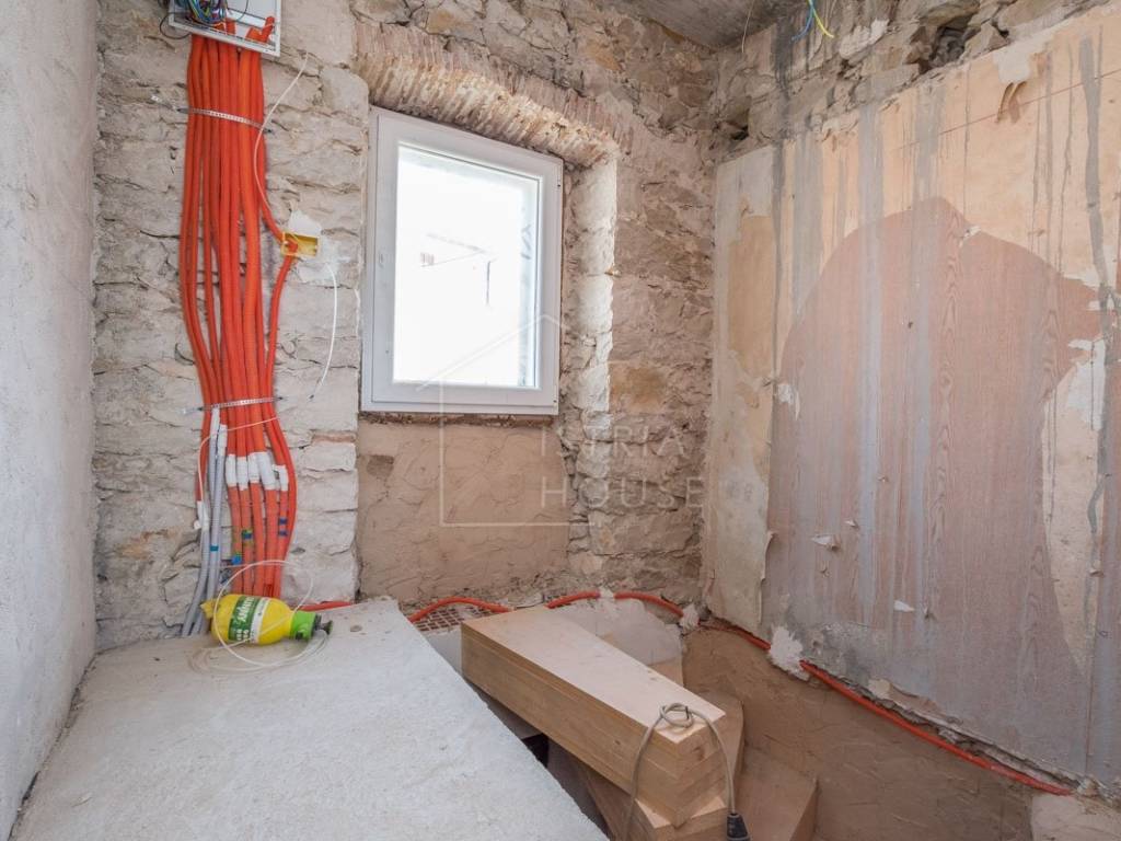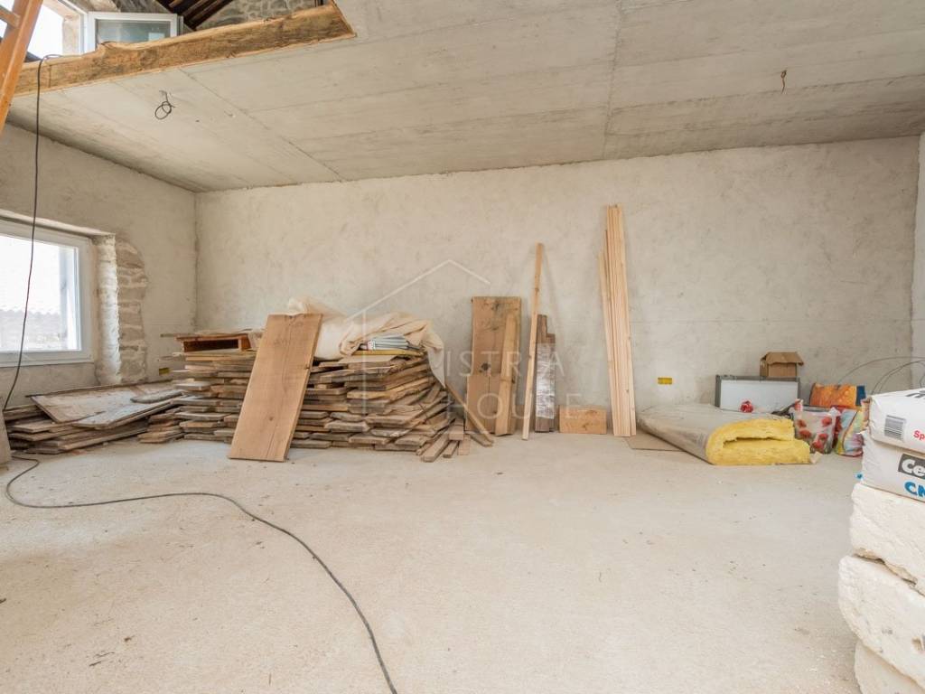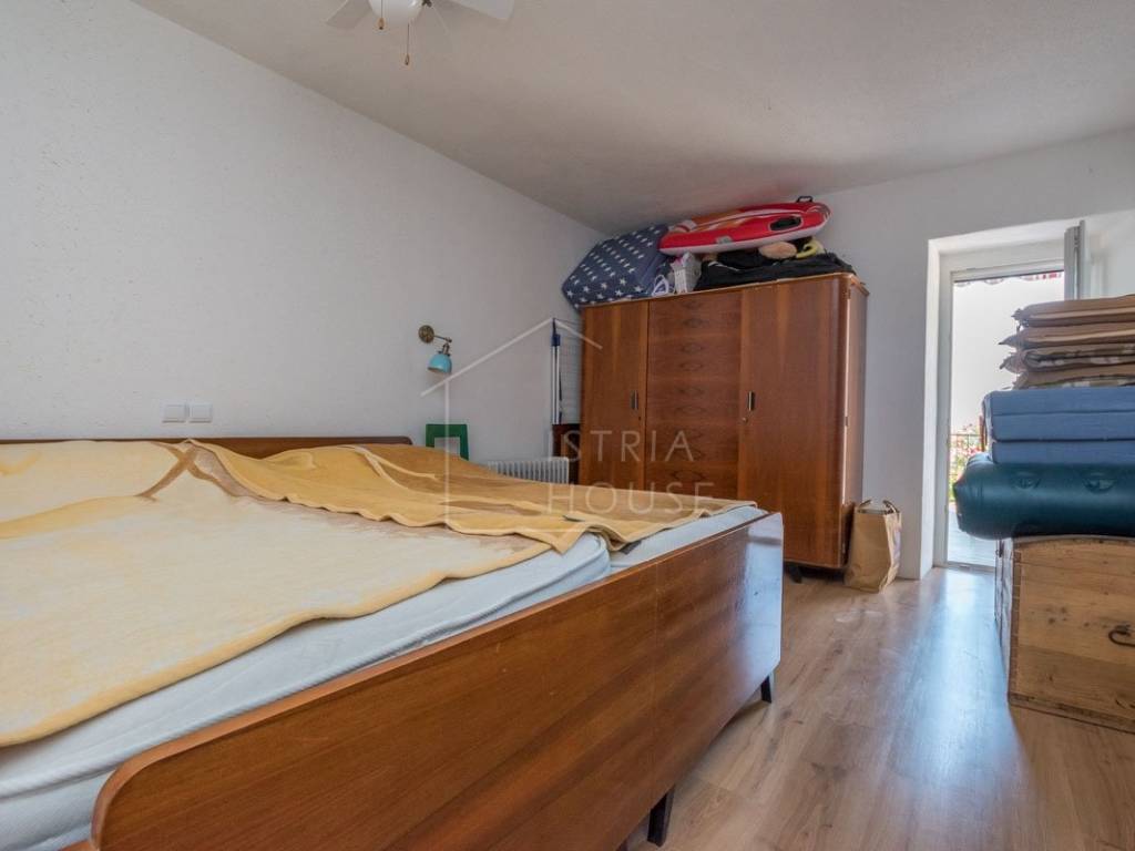 Sastoji se od dva zasebna stana. U prizemlju kamene kuće nalazi se stan od 70m2 kompletno renoviran 2020. godine te u njemu nalazimo open space prostor sa kojeg se izlazi na vrlo prostranu terasu od 43m2, tu je i dnevni boravak, kuhinja, blagovaonica, dvije spavaće sobe i kupaonica.