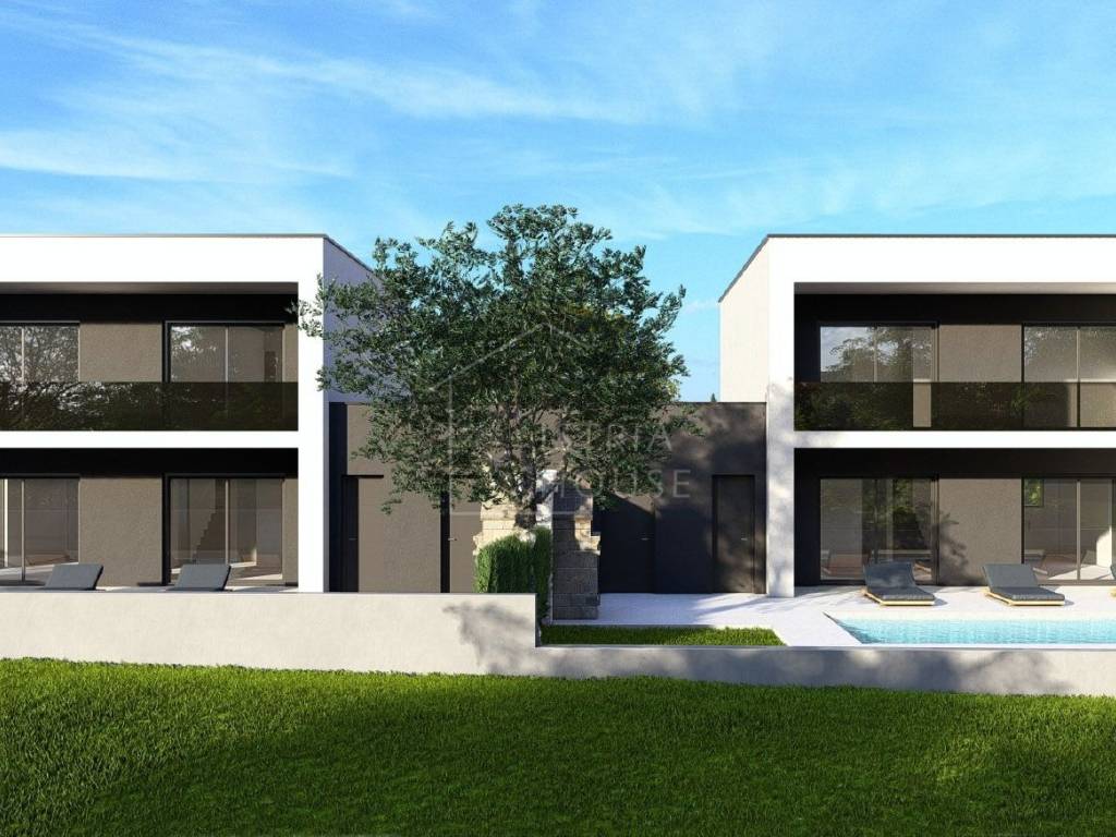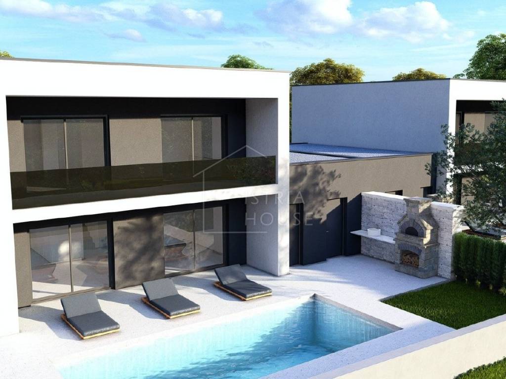 Prodaje se nova moderna kuća za odmor na traženoj lokaciji u okolici grada Rovinja. Kuća se nalazi na rubu građevinske zone, u mirnom naselju, okružena prirodom i zelenilom. Kuća je dvojna i trenutno je u izgradnji, a sastoji se od prizemlja i kata. U prizemlju se nalazi prostrani open space dnevni boravak s kuhinjom i blagovaonicom, jedna spavaća soba sa kupatilom, wc, ostava i prostrano spremište. Na katu se nalaze tri spavaće sobe sa izlazom na veliku terasu koja je orijentirana na južnu stranu te dva kupatila. U lijepo uređenom dvorištu nalazi se bazen sunčalištem te ljetna kuhinja s kaminom. Nekretnina će biti opremljena klima uređajima za grijanje i hlađenje te podnim grijanjem. Nekretnina će biti završena u drugoj polovici 2023. godine što daje vremena kupcu za odabir završnih materijala. U blizini kuće se nalaze trgovina, restorani, kafići, a na samo nekoliko minuta vožnje se nalazi i Rovinj sa svojim prekrasnim plažama.