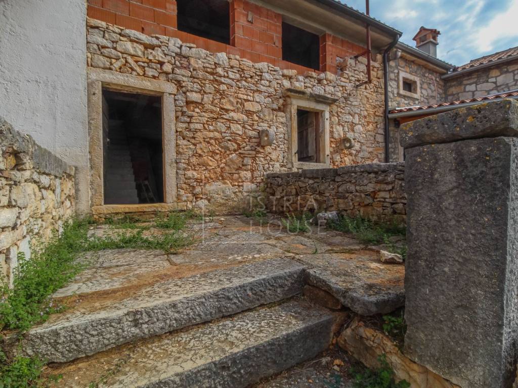 Prodaje se autohtona kamena kuća za renovaciju u jednom malom tipičnom selu u okolici Poreča. Kuća je u nizu, kamena sa manjim prednjim dvorištem koji bi služio kao parking i većim stražnjim dvorištem od 250 m2. Kuća se proteže na tri etaže i potrebno ju je renovirati do kraja. Do sada je u potpunosti napravljen novi krov, betonske ploče koje dijele katove kao i unutarnje stepenište. Udaljenost do Poreča i mora je otprilike 10 km.