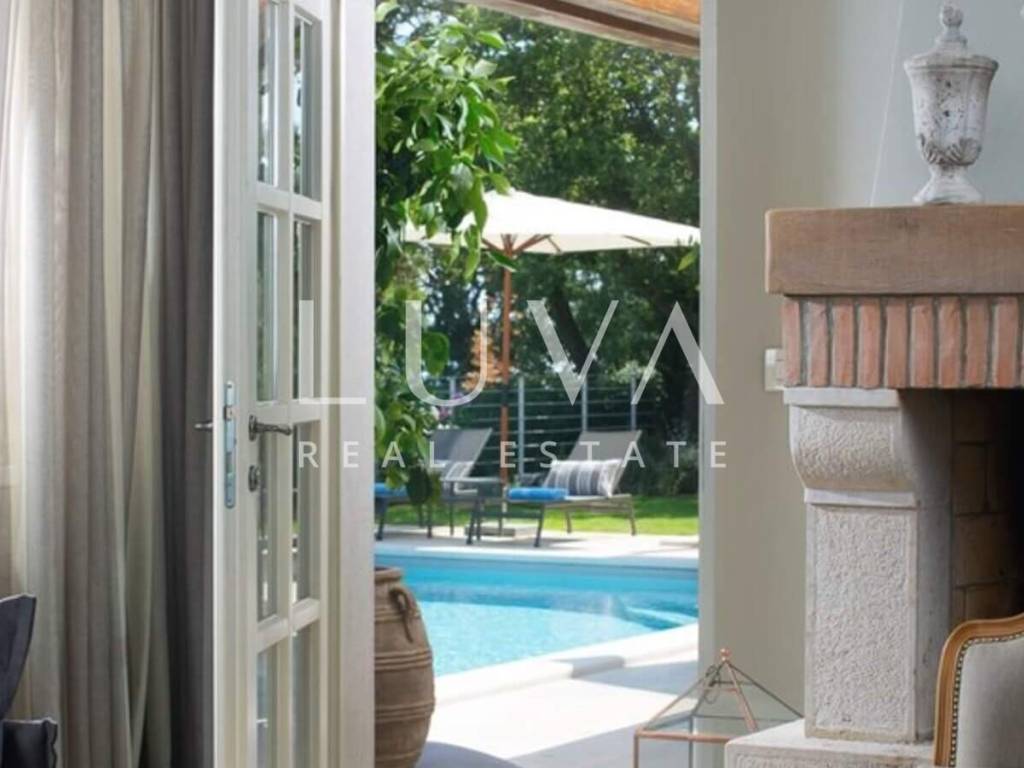 Prodaje se luksuzna vila s bazenom u malom mirnom mjestu Ladići blizu Kanfanara. Kanfanar je odlično prometno povezan s autoputom kroz Istru, a u blizini se nalazi i poznati grad Rovinj. Osim Rovinja, u blizini su poznati gradovi kao što su Poreč, Novigrad i Vrsar. Ova luksuzna vila je izgrađena 2016. godine, površine je 359 m2 i prostire se na 2 etaže. Dio je kompleksa od nekoliko luksuznih vila koje imaju zajedničke sportske terene i igralište za djecu. Vila ja građena u tradicionalnom istarskom stilu u kamenu s kosim krovom s crijepom. Osim eksterijerom i interijerom dominira tradicionalan stil s kamenim zidovima, drvenim gredama i rustikalnim drvenim namještajem. U prizemlju vile se nalazi prostrani dnevni boravak s kaminom koji mu daje dodatni šarm, potpuno opremljena kuhinja s dizajnerskim aparatima te veliki stol za blagovanje. Ispred kuće se nalazi vanjski bazen, a pored njega se nalazi natkrivena terasa s roštiljem i stolom za blagovanje. Vila ima 4 spavaće sobe s vlastitim kupaonicama i prodaje se potpuno namještena i opremljena. Vila je već nekoliko godina u funkciji turističkog najma, a osim ove vile na prodaju su i sestrinske vile pa je moguća kupnja više sestrinskih vila kao investicija u turizam u Hrvatskoj.