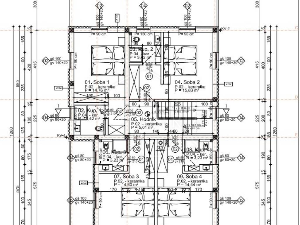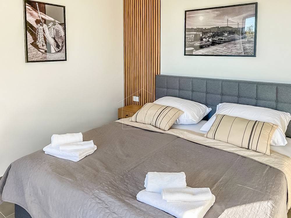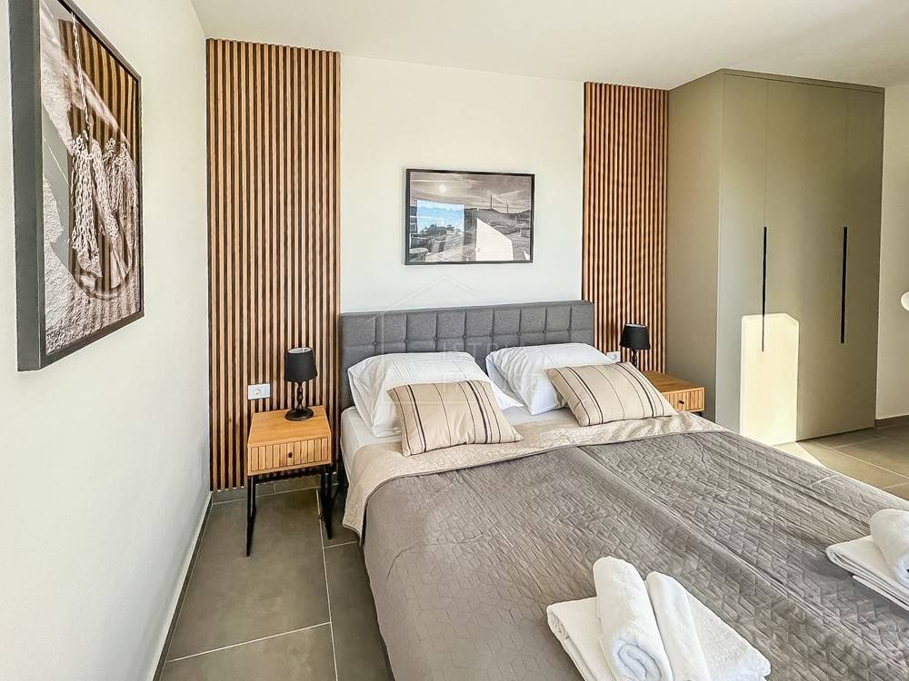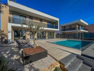 Vila sa svojom površinom od 200m2 nalazi se na okućnici od 640 m2 te se sastoji od prizemlja i prvog kata. U prizemlju pronalazimo kuhinju , blagavaonu, odvojeni dnevni boravak, wc te dva spremišta i vešeraj. Iz glavnih prostorija prizemlja pruža se pogled na vanjsku okućnicu preko velikih otvora te time prostorije dobivaju prirodno osvjetljenje. Na prvom katu nalaze se 4 spavaće sobe, svaka sa svojom vlastitom kupaonicom te garderobom, s time da dvije spavaće sobe imaju izlaz na terasu sa koje se pruža pogled na bazen