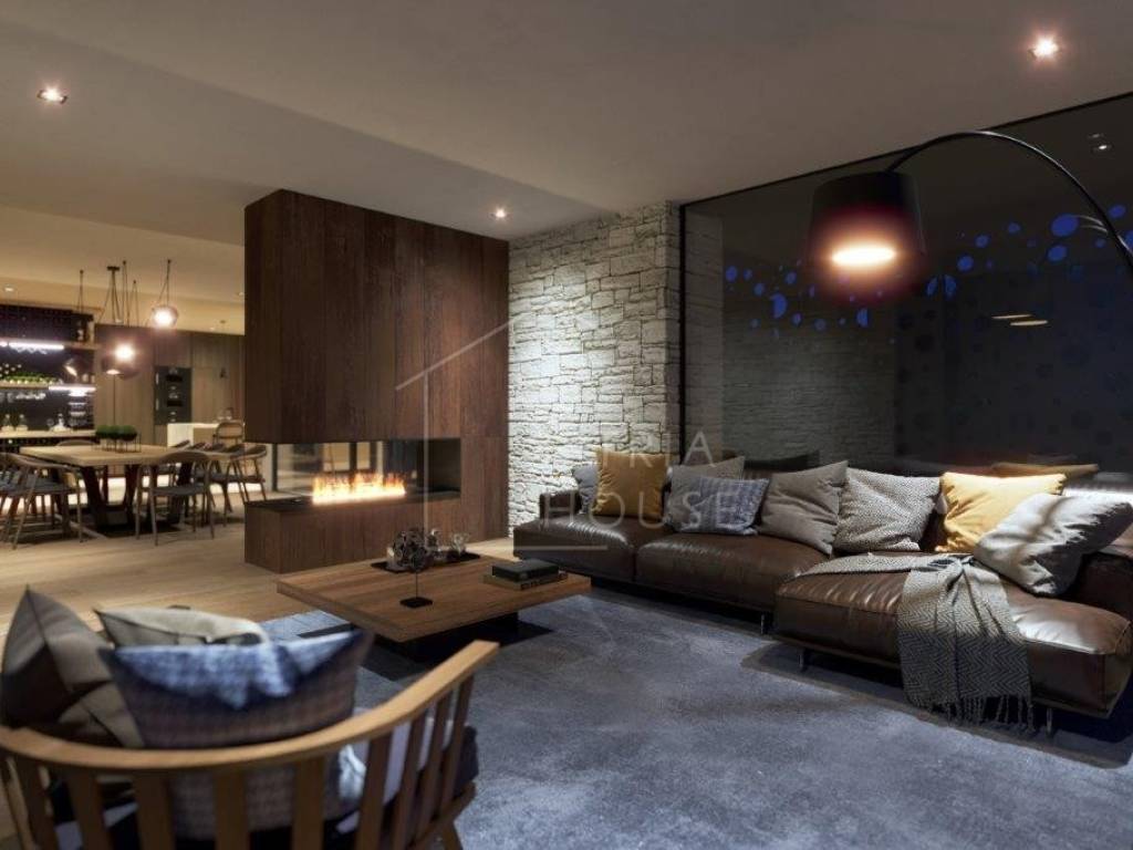 Villa ima ukupno 270 m2 i proteže se na dvije etaže, a nalazi se na velikom zemljištu od približno 1500 m2 što je idealna veličina za tako prekrasnu villu jer daje dovoljno prostora i privatnosti. U prizemlju se nalazi otvoreni dnevni boravak koji se spaja sa luksuznom kuhinjom i hlagovaonom. Iz dnevnog boravka se izlazi na natkrivenu terasu koja u načelu funkcionira kao produžetak dnevnog boravka te tako veliki prostor čini još većim. Taj efekt je još više povećan jer su prisutne staklene stijene koje još više otvaraju prostor. Na prvom katu ville se nalaze četiri spavaće sobe svaka sa svojim vlastitim kupatilom te izlazom na ogromnu terasu s koje se pruža prekrasan pogled na more, a po lijepom vremenu se vide i Alpe.