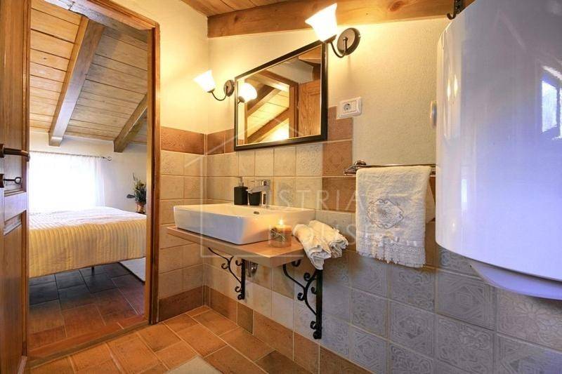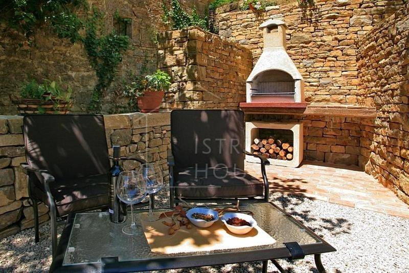 Kuća je samostojeća, autohtona i kamena, a sastoji se od šarmantnog dnevnog boravka s kuhinjom gdje je maksimalno sačuvan istarski kameni stil, dvije spavaće sobe pri čemu svaka soba ima svoje kupatilo. Iz dnevnog boravka se izlazi na prekrasnu terasu sa koje se pruža panoramski pogled na Motovun. Sa vanjske strane kuće postoji i ostava.